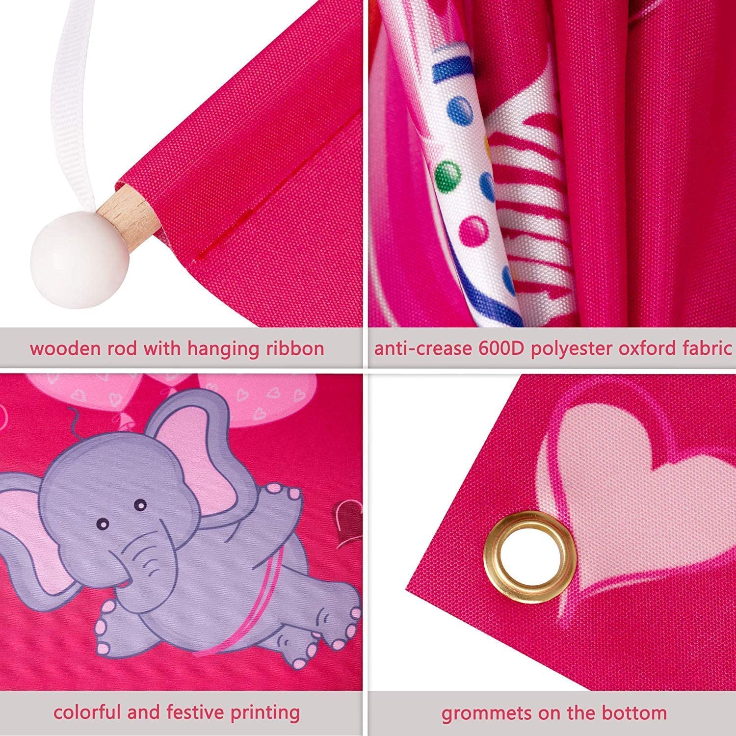 - Come pre-assembled and ready to hang - The top of the banner has wooden rod with hanging ribbon for easily hanging up and taking down that you can hang them anywhere you want or take them down and roll them to store for next year use. They have grommets at the bottom for reinforcement that you can attach them to wall keeping them from flapping in the wind. No assembly needed.