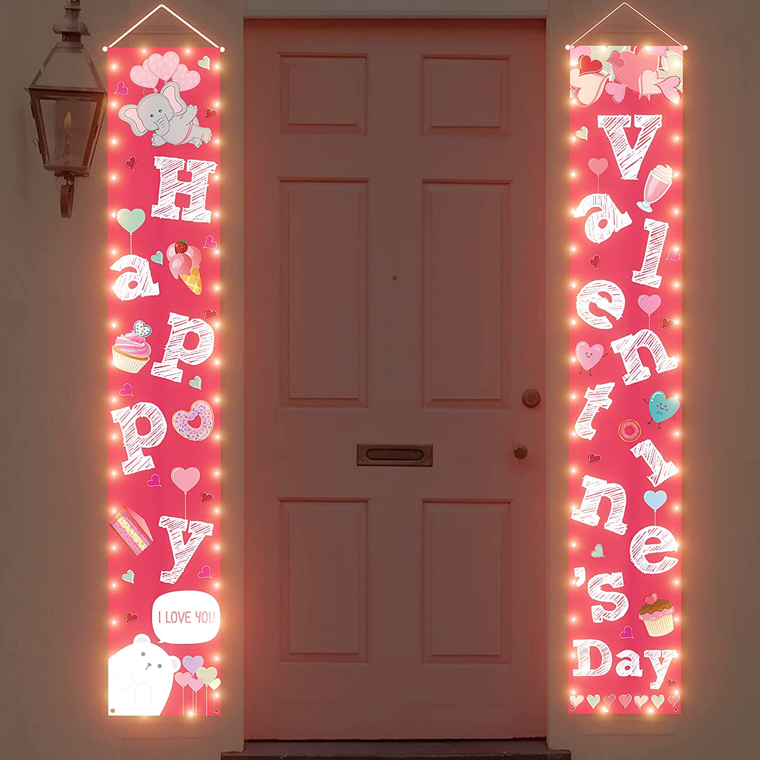 2PCS Valentines Day Decorations Lighted Banners Porch Signs Heart Love Hanging