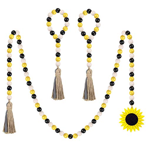 - Inspirational sunflower design: these rustic wooden bead garlands feature a combination of yellow, black and white beads, and sunflower tag ornaments, with black and white plaid tassels, this combination design is farmhouse style, and the inspiring sunflower theme design brings you a visually enjoyable experience and a warm feeling