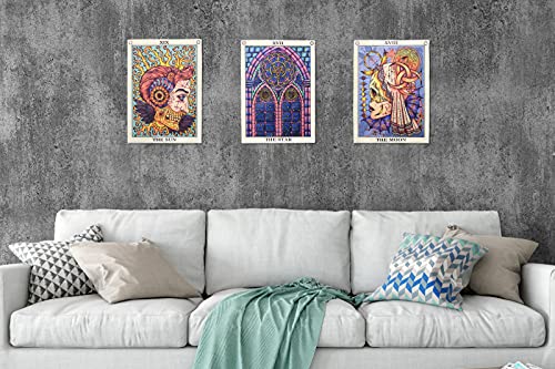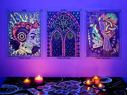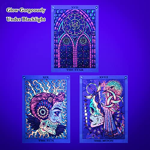3 Pcs Tarot Tapestry Sun Moon Star Tarot Card Tapestry Blacklight Poster UV Reactive Indie Trippy Tapestry