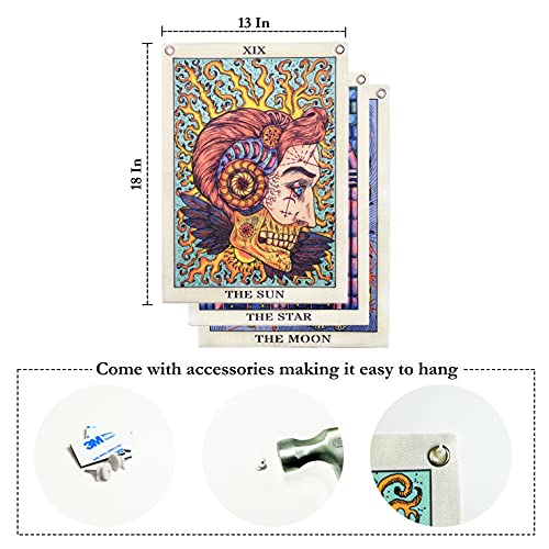 - 【Tarot Tapestry】You will get 3 pieces tarot tapestries (13’’x18’’ each): The Sun, The Moon, and The Star.