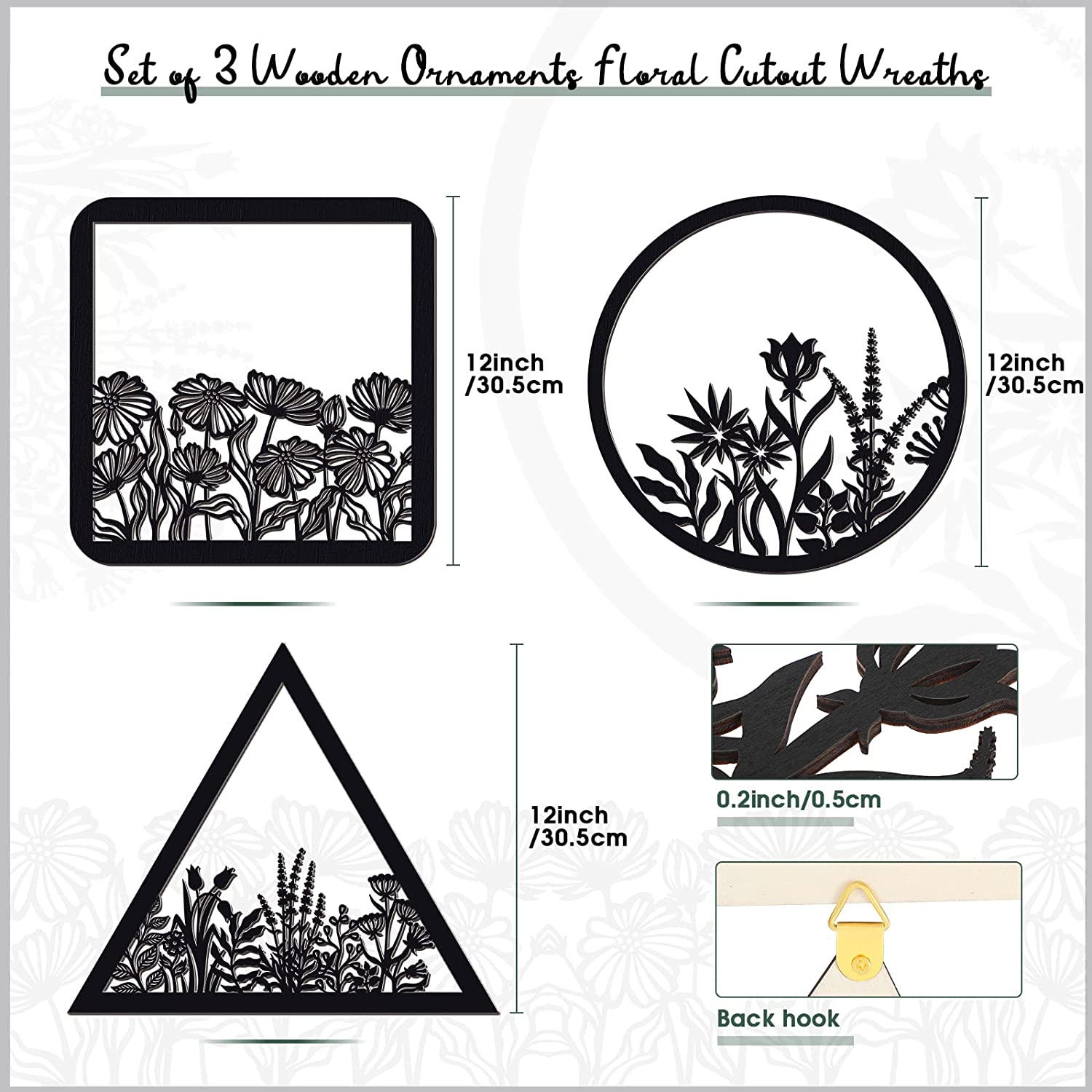 - Size Information: the laser cut flower displays feature 3 assorted shapes, round, triangle and square, and measure 30.5 cm/ 12 inches in length and width, 0.5 cm/ 0.2 inch in thickness, a proper size to hang on the wall and front door, can be noticed by family and guests