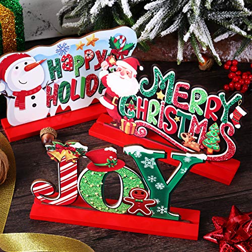 - Adorable Christmas centerpiece sign: you will receive a total of 3 pieces of Merry Christmas centerpiece signs in 3 different but delicate designs, all the table top decorations are filled with elements like Merry Christmas, JOY, snowman, reindeer and so on, vibrant colors of them can well add festive atmosphere to your home