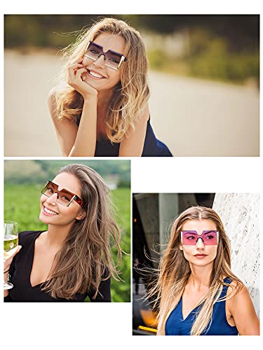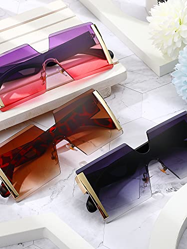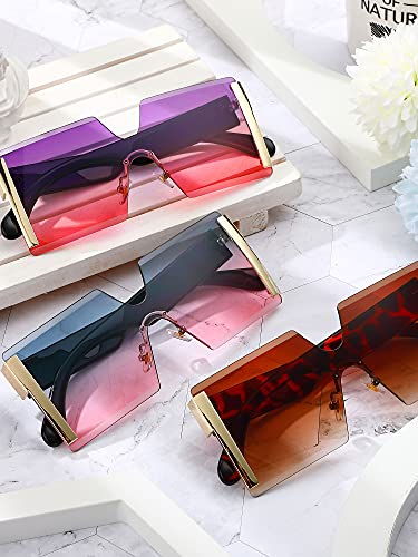 3 Pieces Oversized Square Sunglasses for Women Trendy Fashion Rimless Frame Glasses Transparent Eyewear