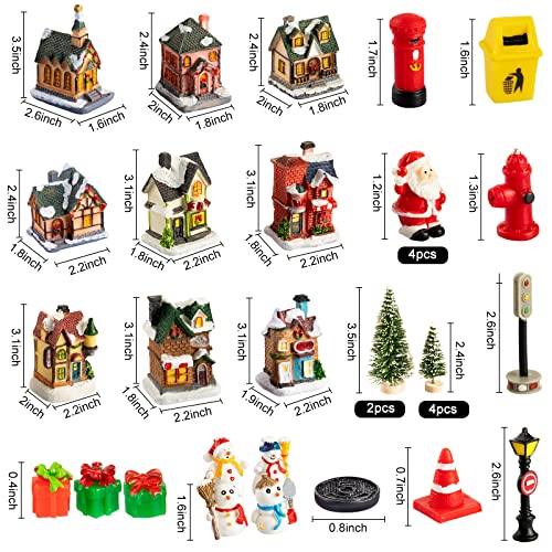 - Christmas Village House Set: receive 9 LED decorative house ornaments, 6 Christmas tree ornaments, 4 snowman ornaments, 4 Santa Claus ornament, 1 fire hydrant decoration, 1 trash can decoration, 1 road cone decoration, 1 manhole cover decoration, 1 traffic light decoration, 1 mailbox decoration, 1 street light decoration, 30 pieces in total