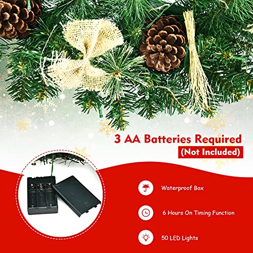- π Battery Powered Design: This artificial Xmas wreath is equipped with a waterproof battery box for convenient and safe daily use. The cordless design makes convenience for hanging and storage. Use 3 AA batteries (not included) to turn on the lights. And the battery box with excellent waterproof ability is also safe for outdoor use.