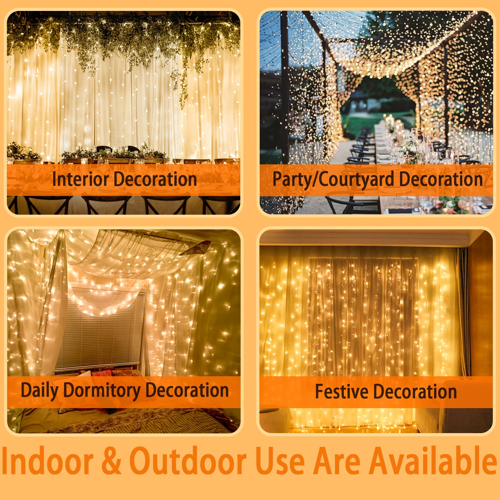 - ✅【Easy to Use】: Simply plug in with a USB charger or power bank and start enjoying the curtain lights anywhere you love. Plus, the 9.8ft lead wire and 10 hooks make it easy to hang them in any special place you desire.