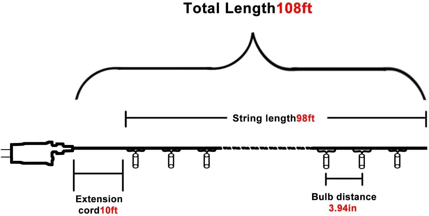 - 【Perfect Christmas Decorations】Our Christmas lights have 300LEDs, it's 108ft long in total.The Spacing is 0.3ft between every LED. The fairy string lights can illuminate dark places and create warm atmosphere.