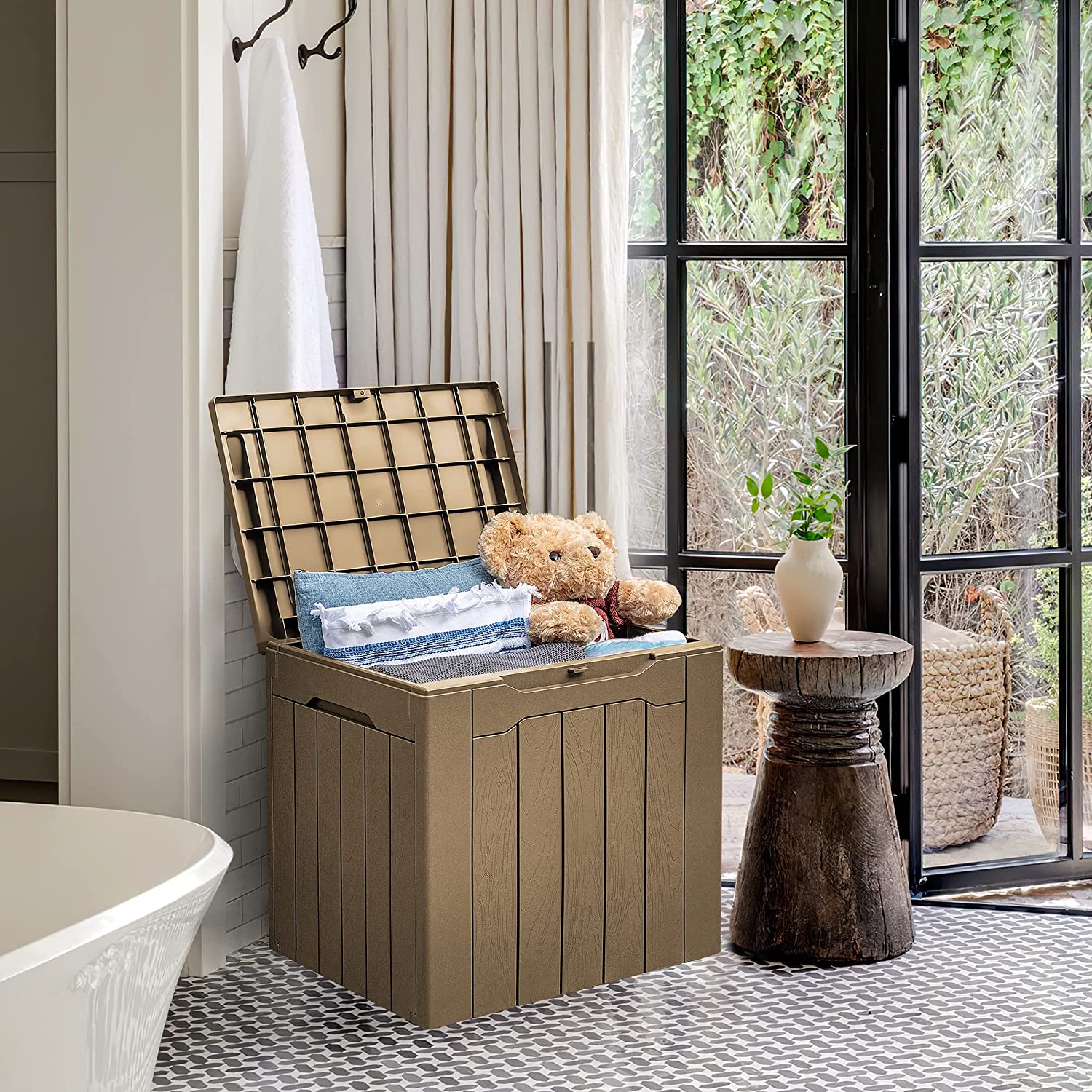 31 Gallon Resin Deck Box Waterproof Outdoor Storage w/ Padlock (Khaki)