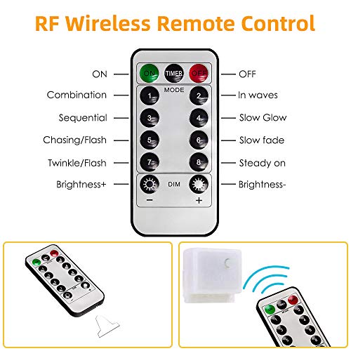 - 💡【8 Modes Dimmable Fairy Lights With Remote】10 brightness adjustment levels and 8 lighting modes to choose: 1.Combination 2.In wave 3.Sequential 4.Slow Glow 5.Chasing/Flash 6.Slow fade 7.Twinkle/Flash 8.Steady on. Set the warm white lights for 6 hours on and 18 hours off with timer, get the current lighting mode when you set the twinkle lights back to work. Nice idea for home, bedroom, fireplace, dorm, living room.