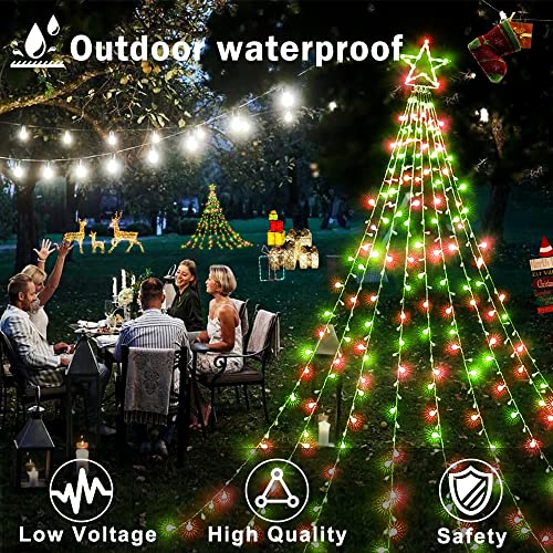 - 【Easy to Install & Safer】The Christmas Star Lights work great with trees from around 8 feet to 13 feet tall. We can hang on a birch limb or exterior wall about 10 feet up. And then we unrolled each light strand and staked to the ground. It was that easy! UL Listed Plug and Low-temp LED bulbs ensures safe to touch even after long time use. Allows you to save time and effort. Safer to use!