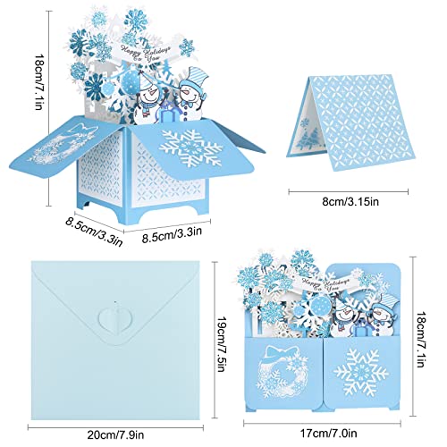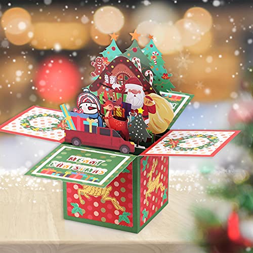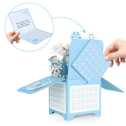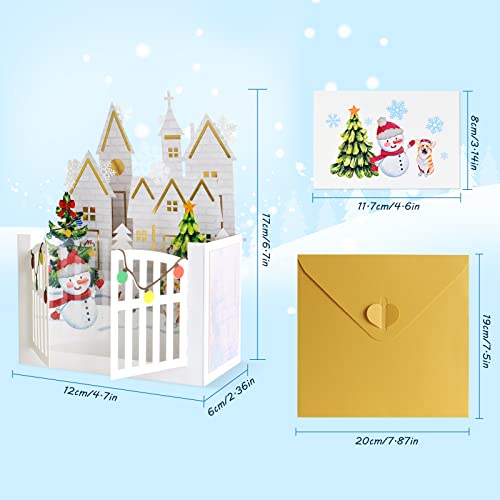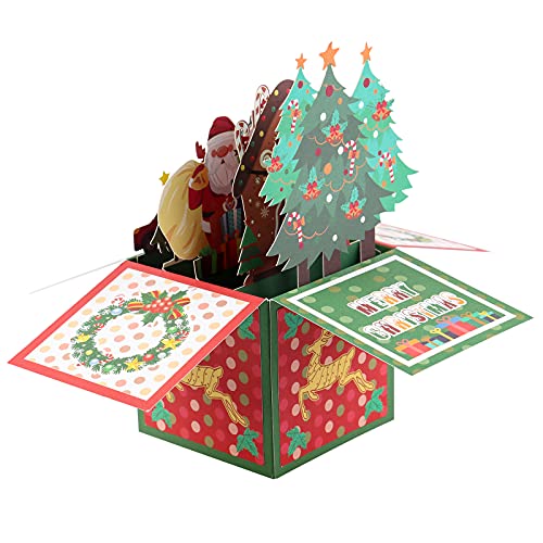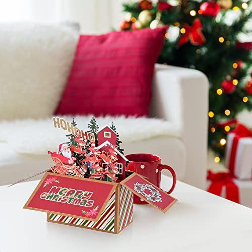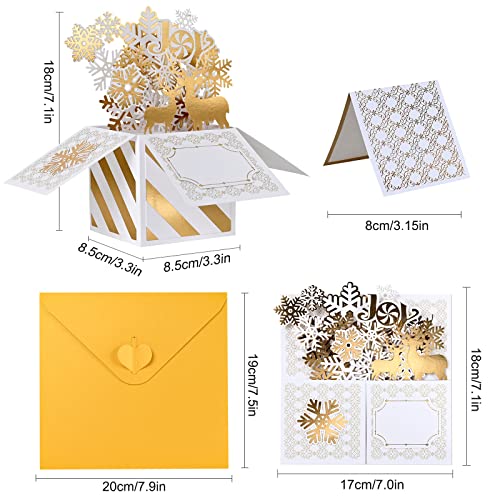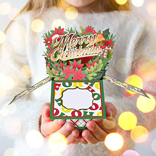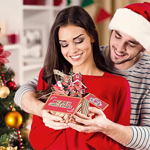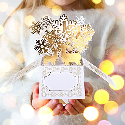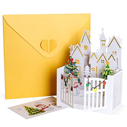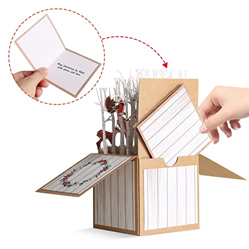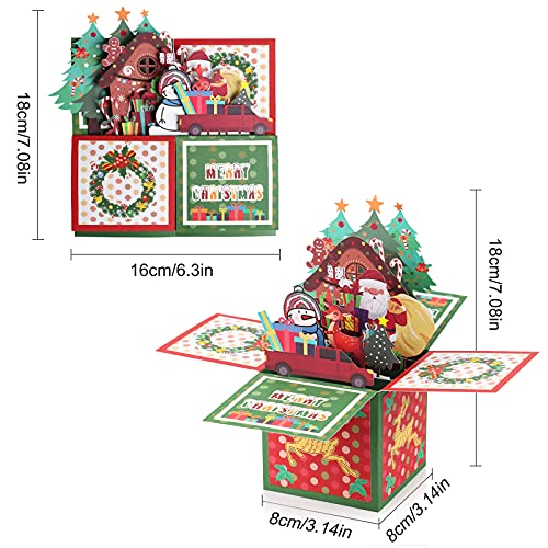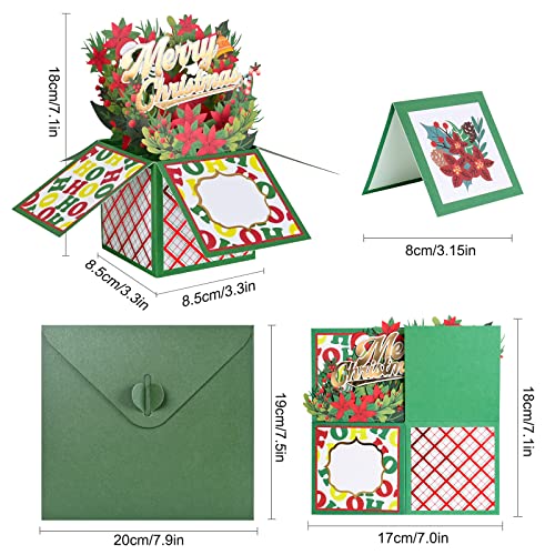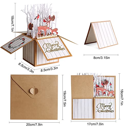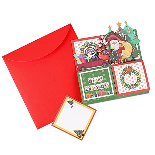 - Pop Up Christmas Cards measures 7.1 in x 7 in when folded flat. 3D greeting cards include a coordinating envelope and a blank tuck-away note card where you can write your own personal message. The behind pocket design of the 3d card, It can be used as a gift card holder or a money envelope!