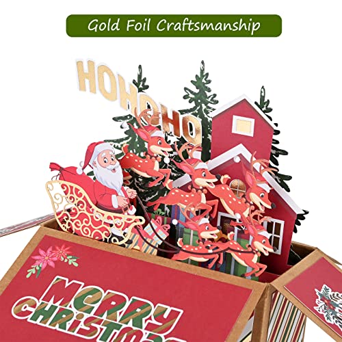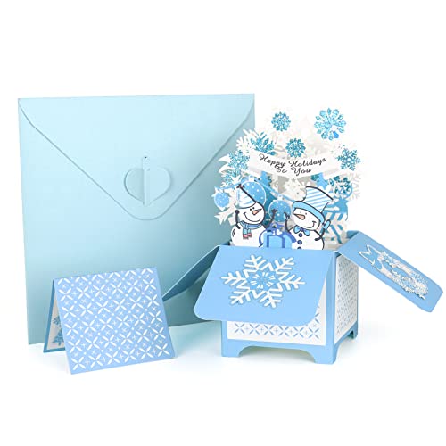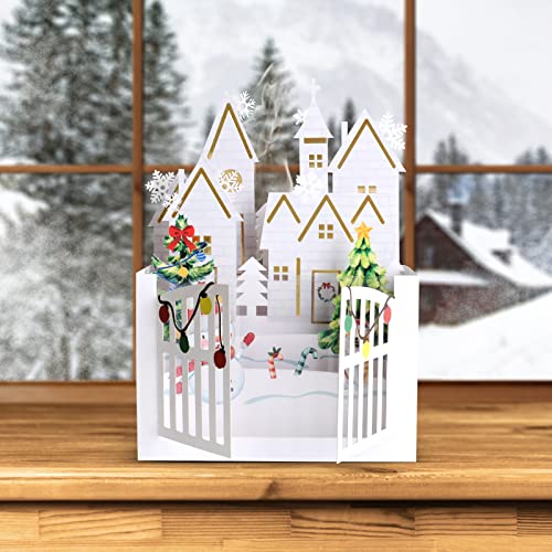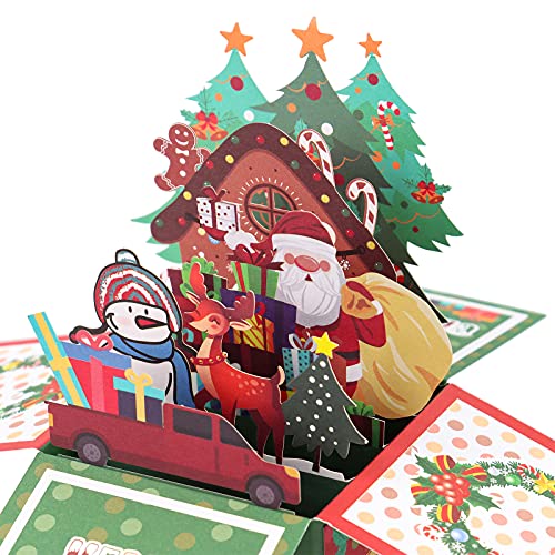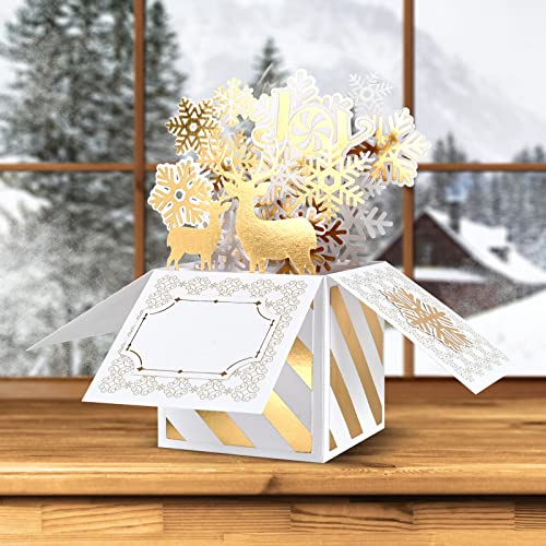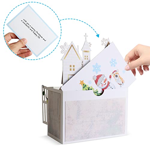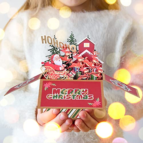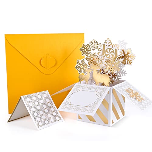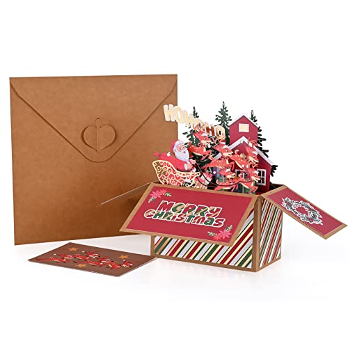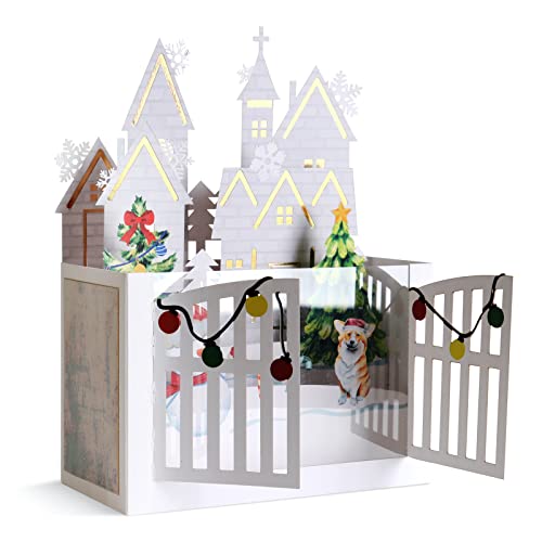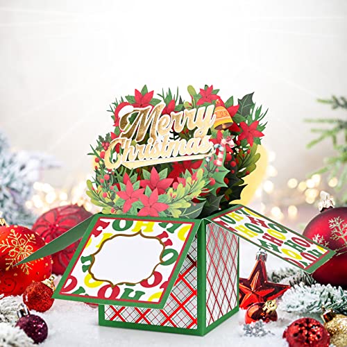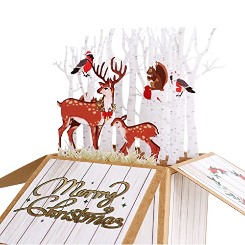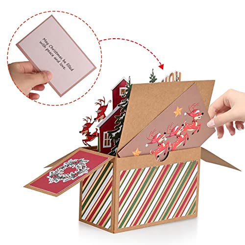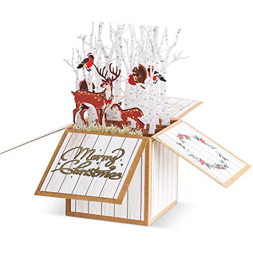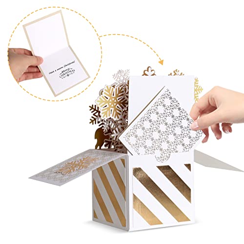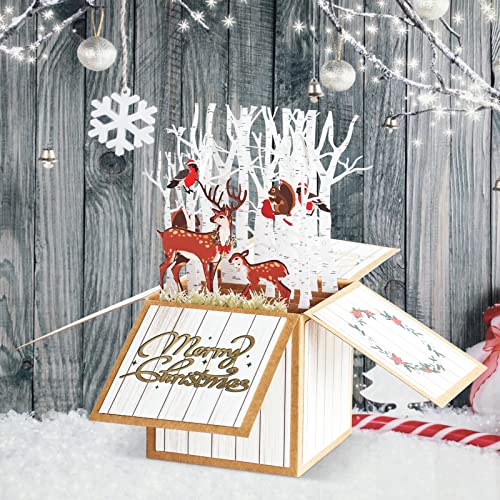 - Pop Up Christmas Cards measures 7.1 in x 7 in when folded flat. 3D greeting cards include a coordinating envelope and a blank tuck-away note card where you can write your own personal message. The behind pocket design of the 3d card, It can be used as a gift card holder or a money envelope!