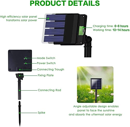 - 【Solar Powered & Energy-Saving】: These string lights are solar powered. Just place the battery panel in sunny area, and the light will automatically turn on at night.