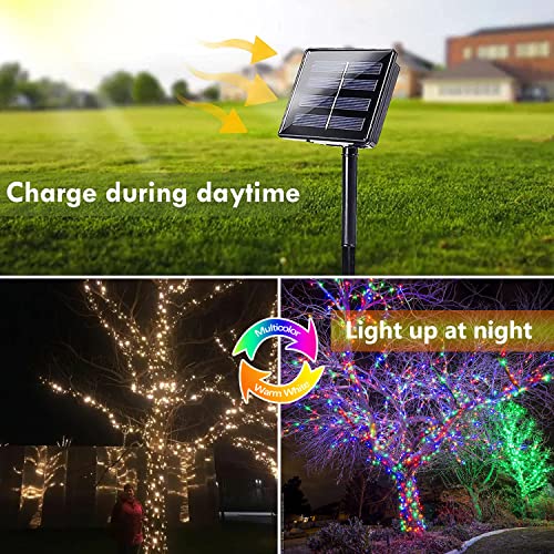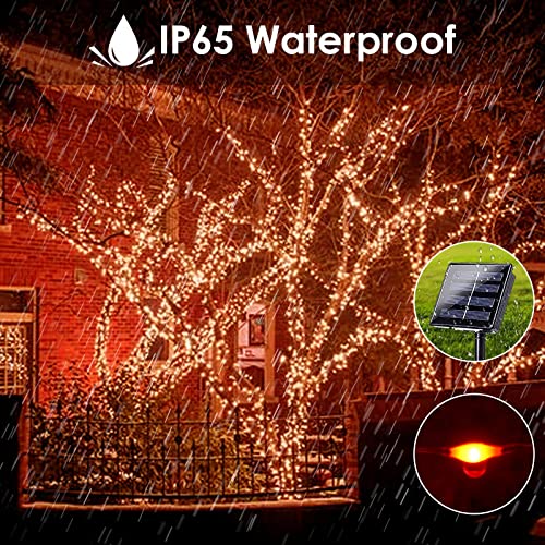 - 【4-Pack 160FT 400 LED Color Changing Solar String Lights】: 4-Pack 400 LED,Unique 8 Lighting Modes & Memory Function & Auto On/Off,IP65 Waterproof Performance.