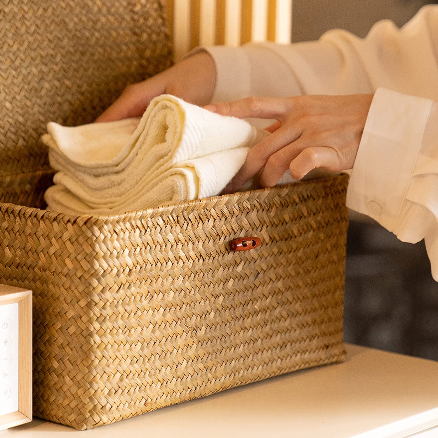 - Features: These storage baskets with lids that could protect your things from dust. The pastoral design style will make your home full of nature.
