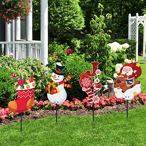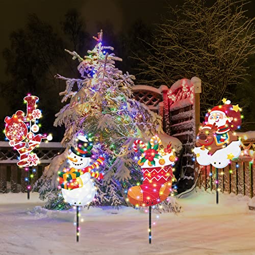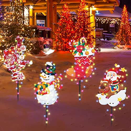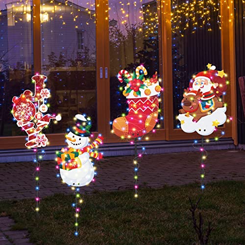 - Delicate Christmas Theme Design: these metal outdoor Christmas decorations adopt classic Christmas elements, such as snowman, Santa Claus, Christmas stockings, elk, present box, [JOY] and so on, will bring a strong festival ambient for your yard, colorful strings of lights are fun and effective additions to your Christmas decorations, both kids and adults will like these Christmas yard decorations