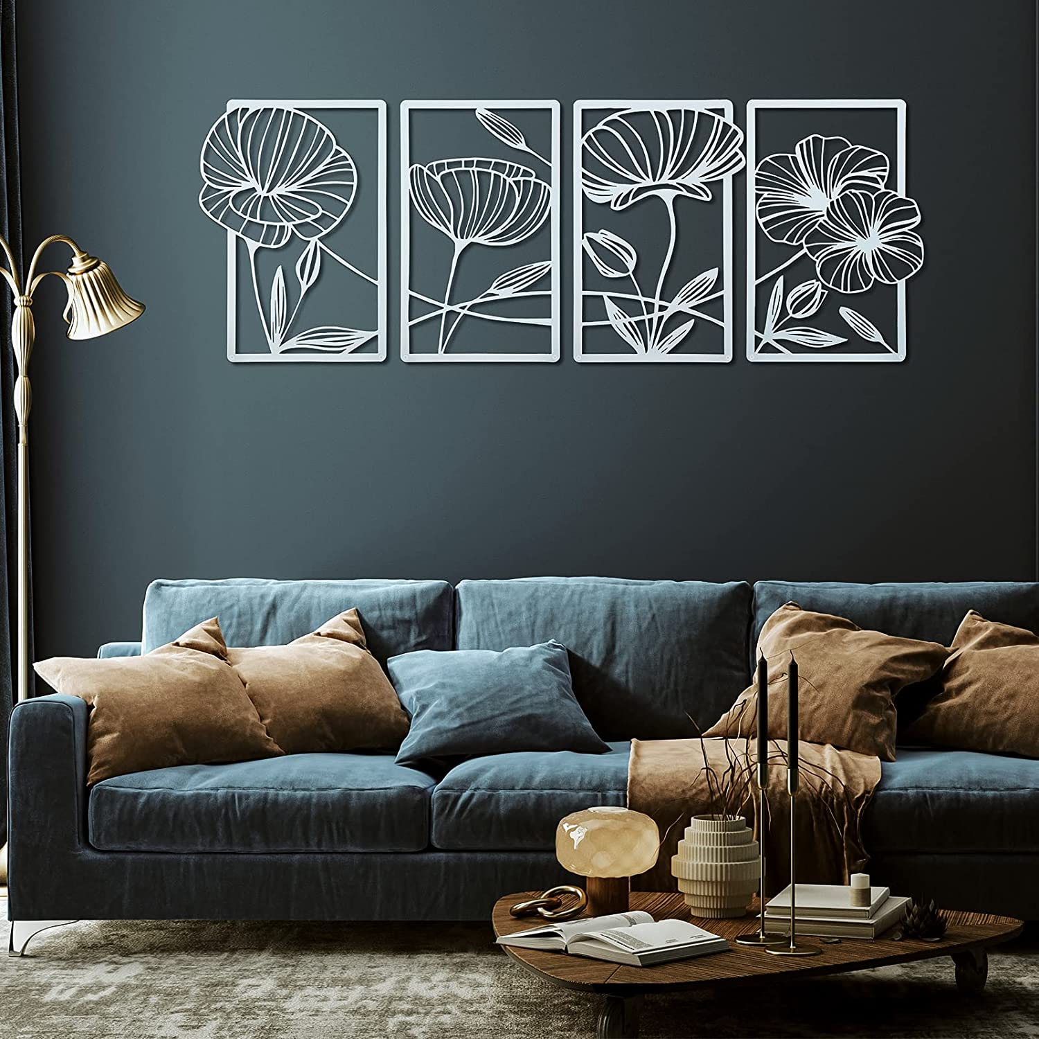4 Pcs Metal Wall Decoration Line Art Minimalist 16.5 x 11.9 Inch (White)
