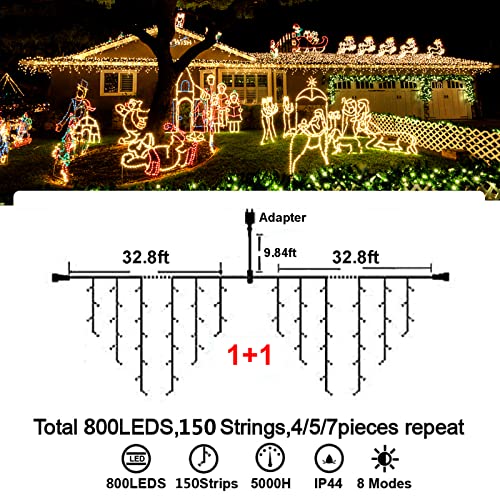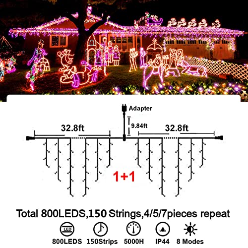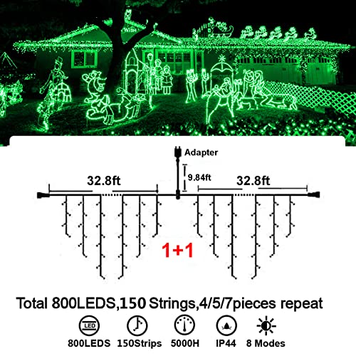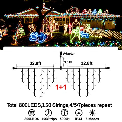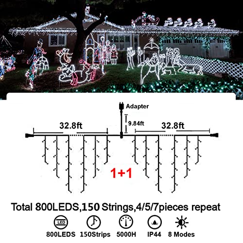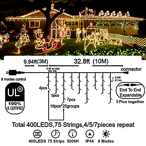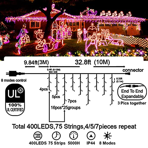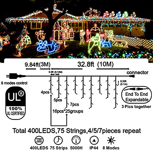 - Christmas Decoration Ice Lights: 400 pieces LED, 32 feet total length with 75 drops, with 4 / 5 / 7 led drops, up to 3 strands end to end extendable to customize your need for larger range lighting and festival decorations.