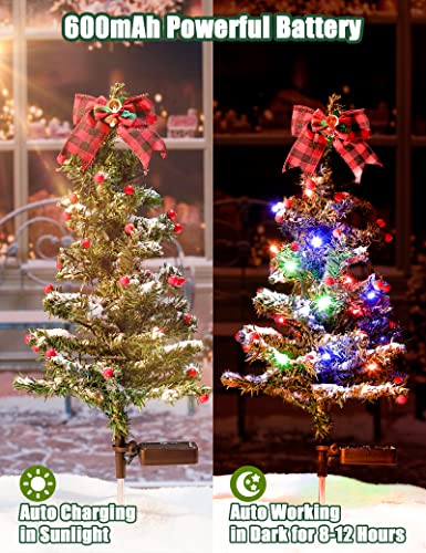 - 【Solar Powered & IP65 Waterproof】Solar Christmas trees for outside built-in upgraded solar panels for fast charging and long lighting time. Will auto charge in the daytime, and auto light up at night. IP65 waterproof, no worries about rain, snow, wind other bad weather. Perfect for outdoor Christmas decor!