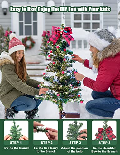 - 【Easy Installation & DIY Christmas Decor 】Very convenient, just plug the solar Christmas tree decorations into the ground and turn on the switch to use. You also can enjoy the warm time of DIY Christmas decor (like red berry, beautiful bow, and cute bell) with family, enhancing family bonding during the time spent with each other.