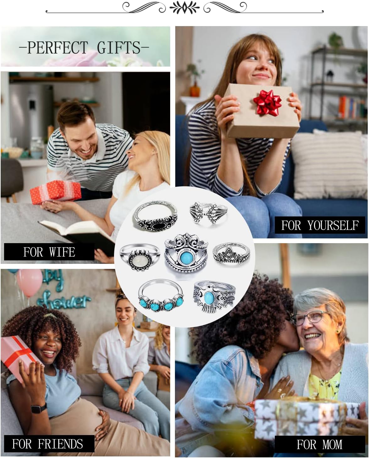 Crafted from premium antique silver alloy and turquoise, these rings are lightweight and comfortable for all-day wear. The polished finish ensures they won't scratch your fingers, while the retro design adds a charming and elegant touch. Built to last, they’ll maintain their beauty over time.