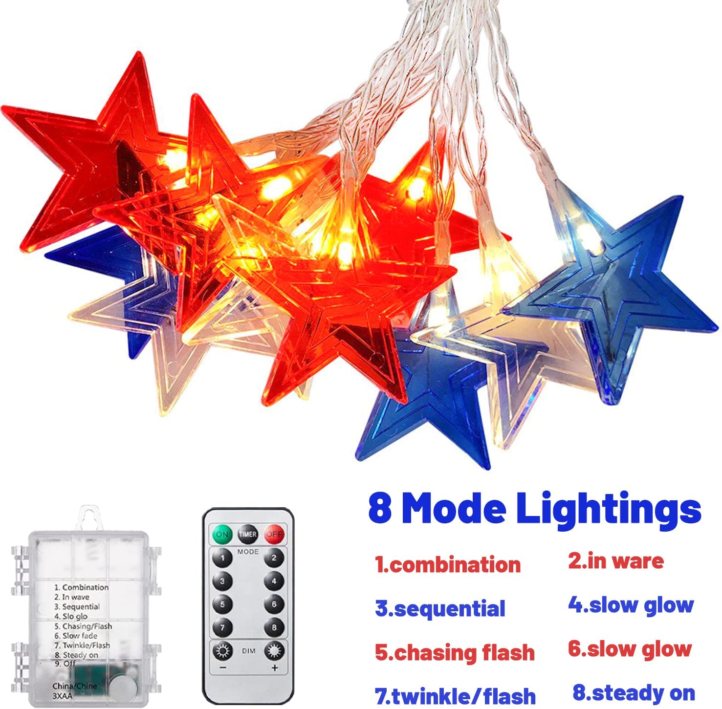- Widely Use: Display your patriotic spirit with these unique red white and blue lights. Great for Memorial Day, Labor Day, Independence day, fourth of July decorations, Veterans Day, American Party, Christmas, New Year, festival, holiday, party, ceremony , and many other celebration occasions.