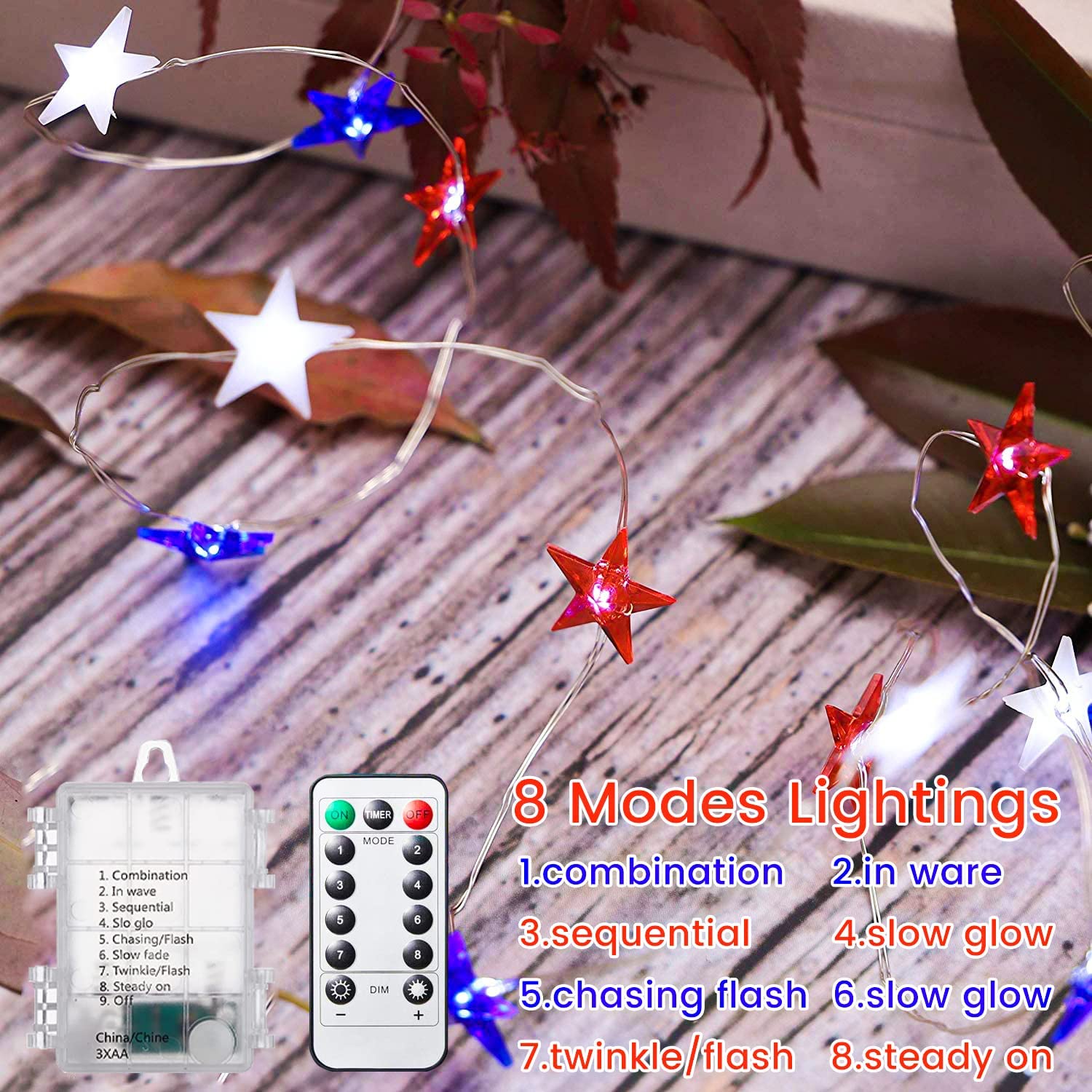 - Indoor and outdoor 4th of July lights: Adopt IP44 waterproof battery box and light string, which can be easily carried and placed indoors and outdoors, suitable for use in rain and snow weather, but the battery box is only IP 44 waterproof, so it can be used normally outdoors, but not enough directly under water.