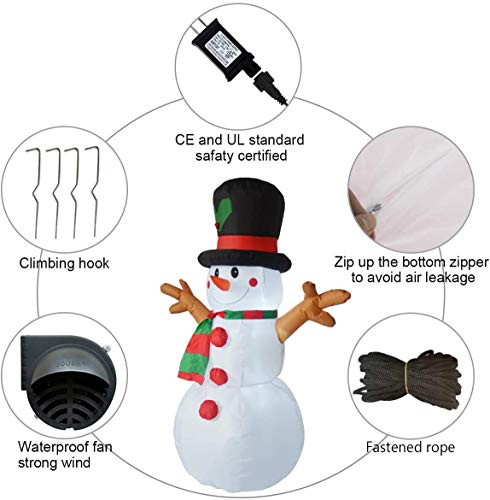 - 【Safety】No need to worry our Christmas Inflatable will fly away by the wind. Our Strong Anchors will Secure To The Ground. It also comes with 10ft extended cord, ground stakes, fastened ropes, and built in sandbags to provide better resistant to the ind. The certified for UL outdoors and uses only 12 volts, making it even safer. We pursue Testing and certification to ensure our product's safety.