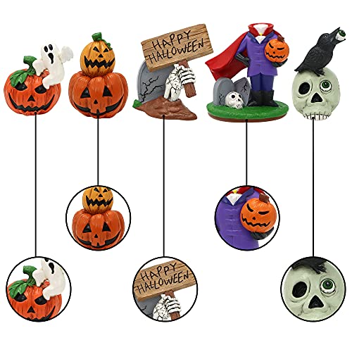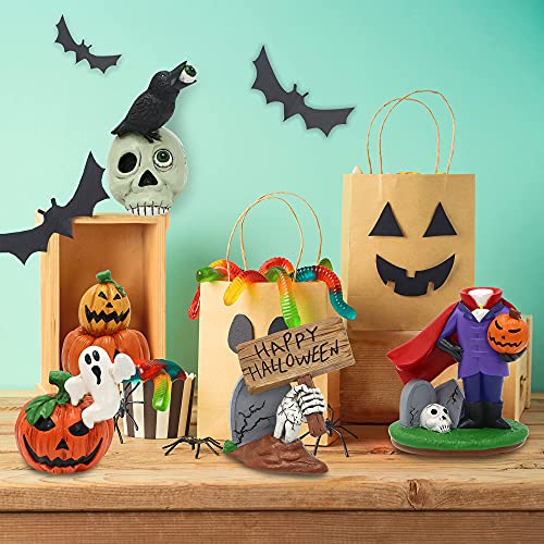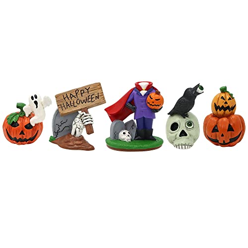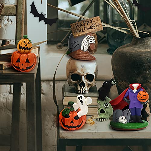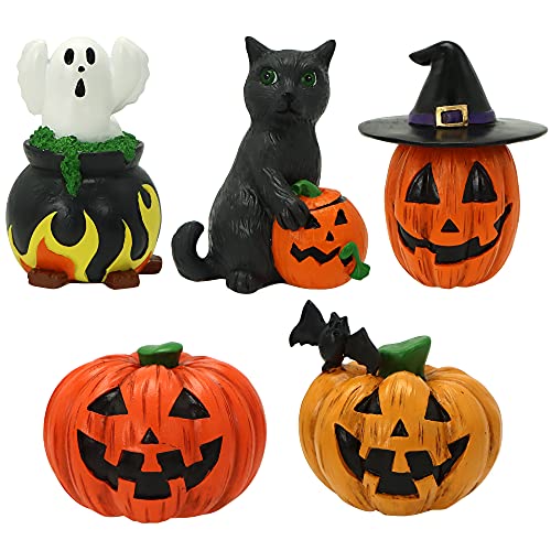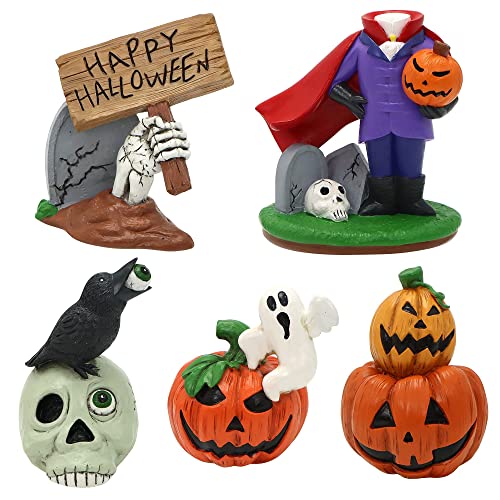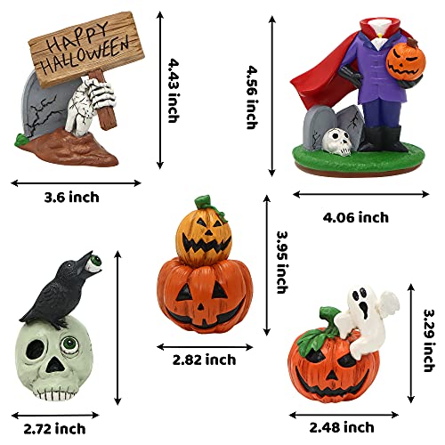 - REAL FUNCTION. These Table Top Decorations are made of resin and these Halloween party decorations come in 5 individual pieces and boast a stable, well-balanced base for easy placement. Place it anywhere and everywhere - place around the house, be it on your shelf, mantle or garden these charming figurines will beautify your home for the Halloween season.