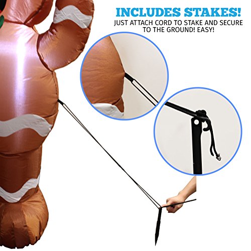 - Led light up giant Christmas gingerbread man inflatable includes a 5 foot inflatable gingerbread man with a fixed sand bag, 2 Fasten ropes, 4 ground stakes and a plug with UL certification.