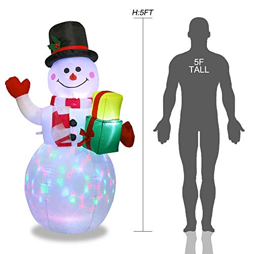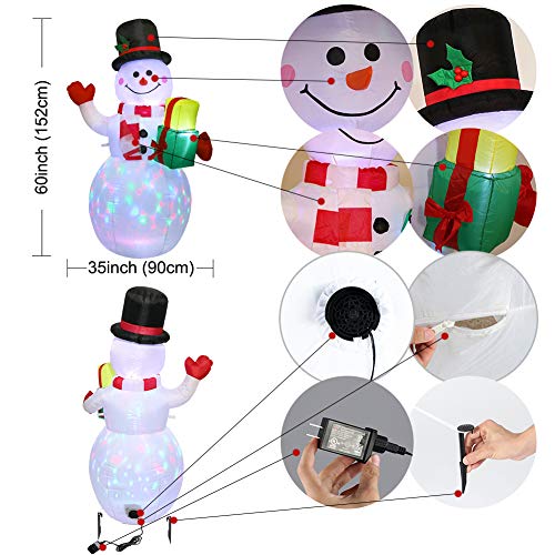 - ◆Cute Christmas Inflatable Decorations: A 5ft inflatable Snowman holding gifts say hello to them when your kids or your guests come at the door or garden, will definitely attract their attention and surprise them