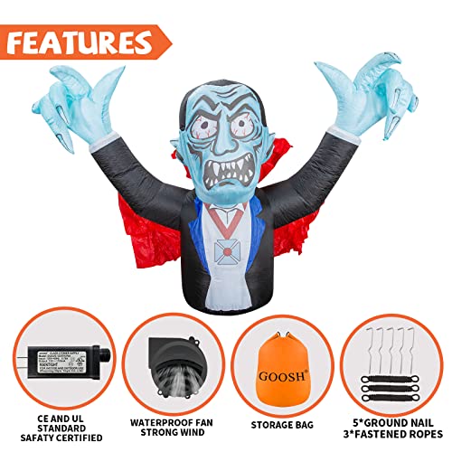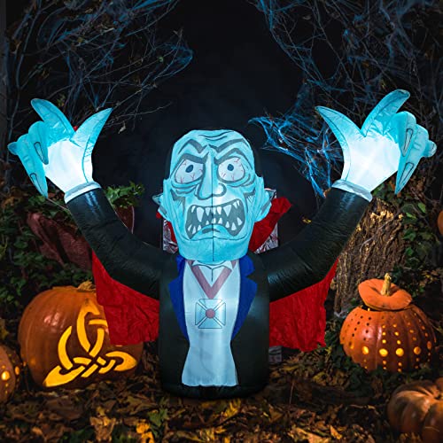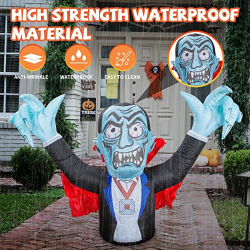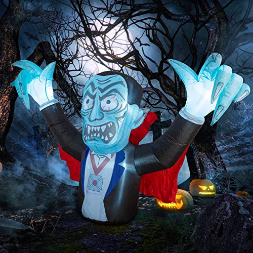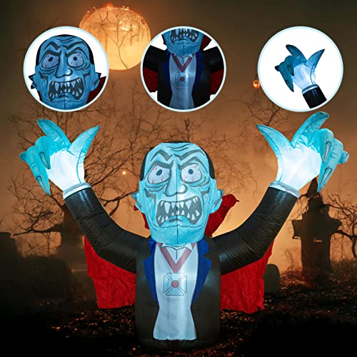 - 【Scary Appearance Design】6.8 FT Halloween inflatable Vampire with Red Cloak with Build-in LED Lights. This makes children love at first sight. Besides Halloween, it can be used as any other holiday decoration, installed in the courtyard to enjoy Holiday with your family and spread a happy atmosphere to your neighborhoods.