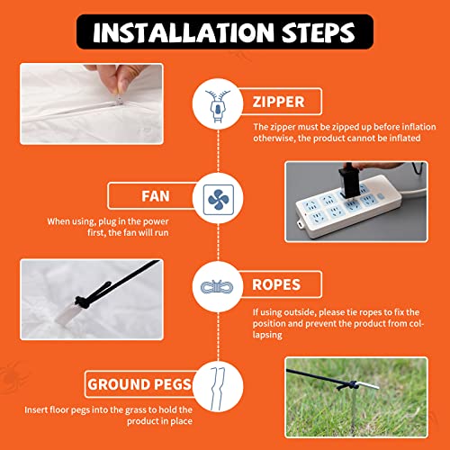- 【Perfect Size & Components】The Halloween inflatable is perfect for outdoor or indoor use. No worries about if this inflatable might fly away by the wind. Besides the blower and storage bag, we provide stakes and ropes to secure it on the ground. Moreover, zip up the bottom zipper to avoid air leakage, otherwise, open the zipper for fast deflation.