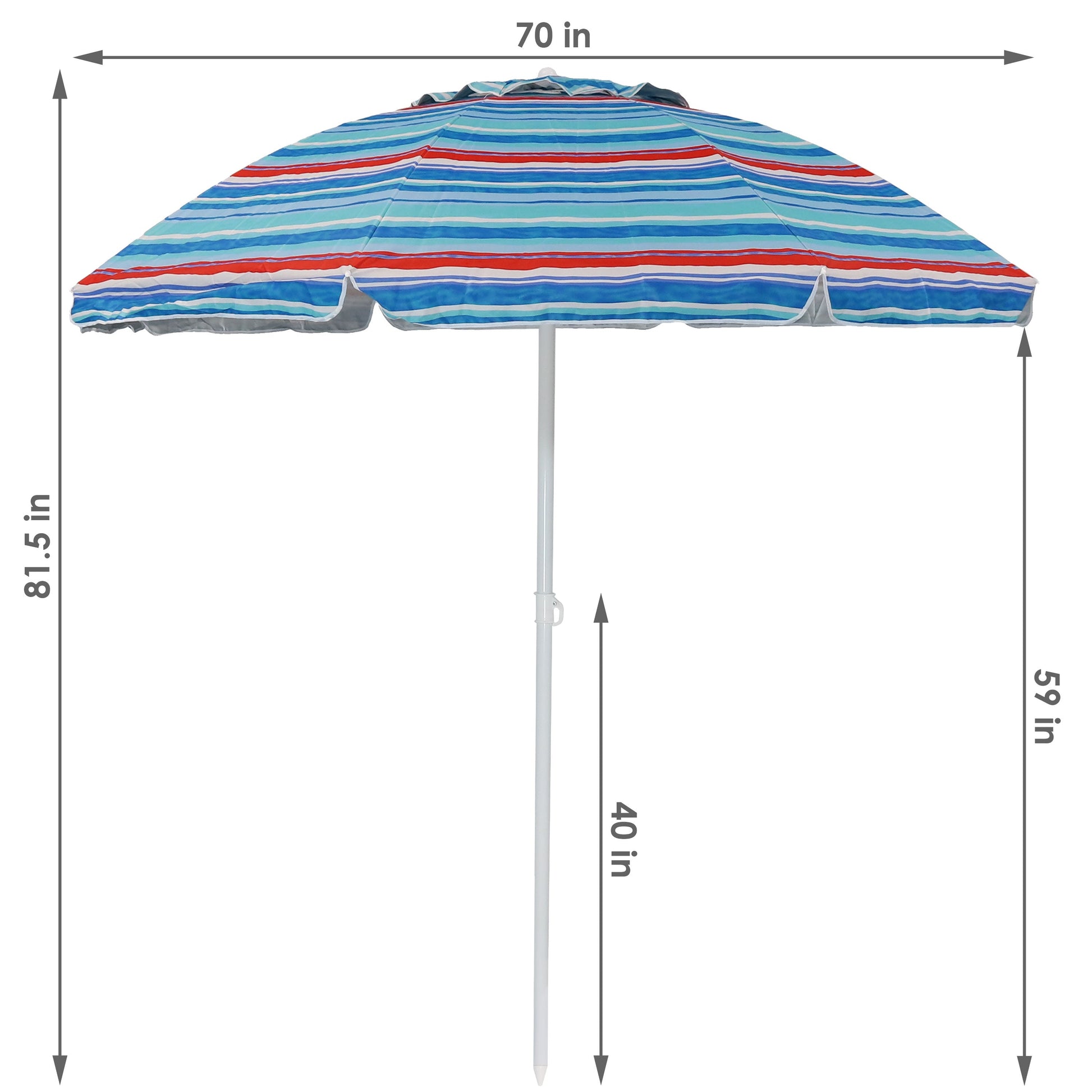 - PROVIDES PLENTY OF SHADE: Portable umbrella has a 1.25-inch diameter pole x 81.5 inches tall x 70 inches diameter umbrella; Weighs 4 pounds; Helps you keep cool in the sun before and after being in the water on the beach or at the lake