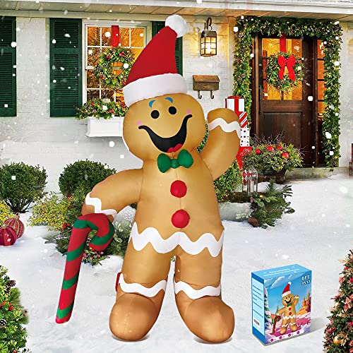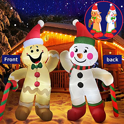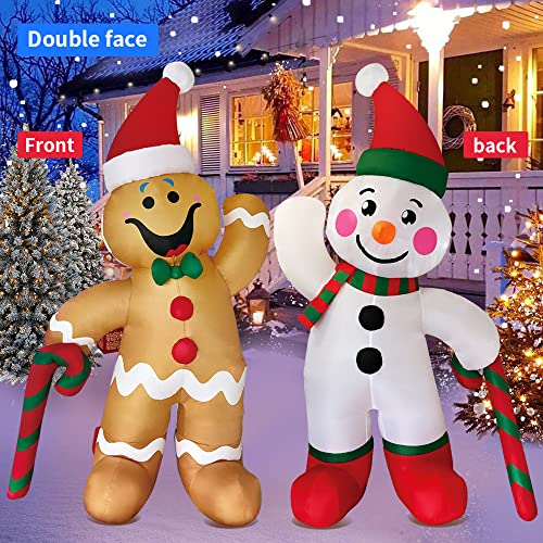 - 【Perfect Christmas Decorations】6 ft snowman with gingerbread man inflatables,perfect for Christmas decor.