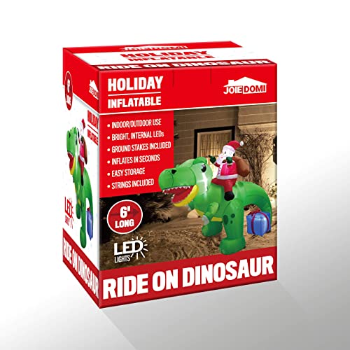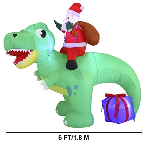 6 FT Long Santa Ride on Dinosaur Inflatable w/ Build-in LEDs