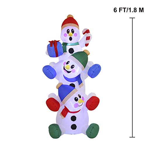 - 6 Feet Tall Snowman Inflatable comes with an extended cord, ground stakes, fastened ropes, built-in sandbags, and a plug with UL certification.