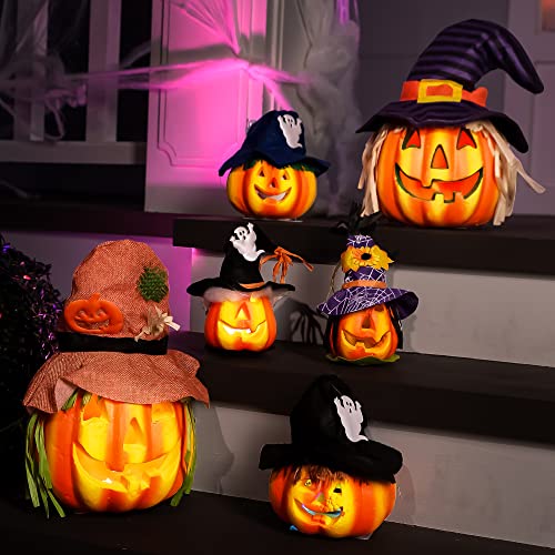 - Set of 6 Halloween Light Up Jack-o'-Lantern Decorative Pumpkin Halloween Props Decorations
