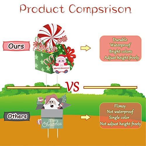 - šćSturdy MaterialćOur lollipop Christmas yard signs are well made of high quality corrugated plastic material, waterproof and reusable, not easy to damage or fade, hold up well in bad weather, durable for outdoor use and can last the whole holiday season (the plastic looks like paper card but it is not, it is plastic material)
