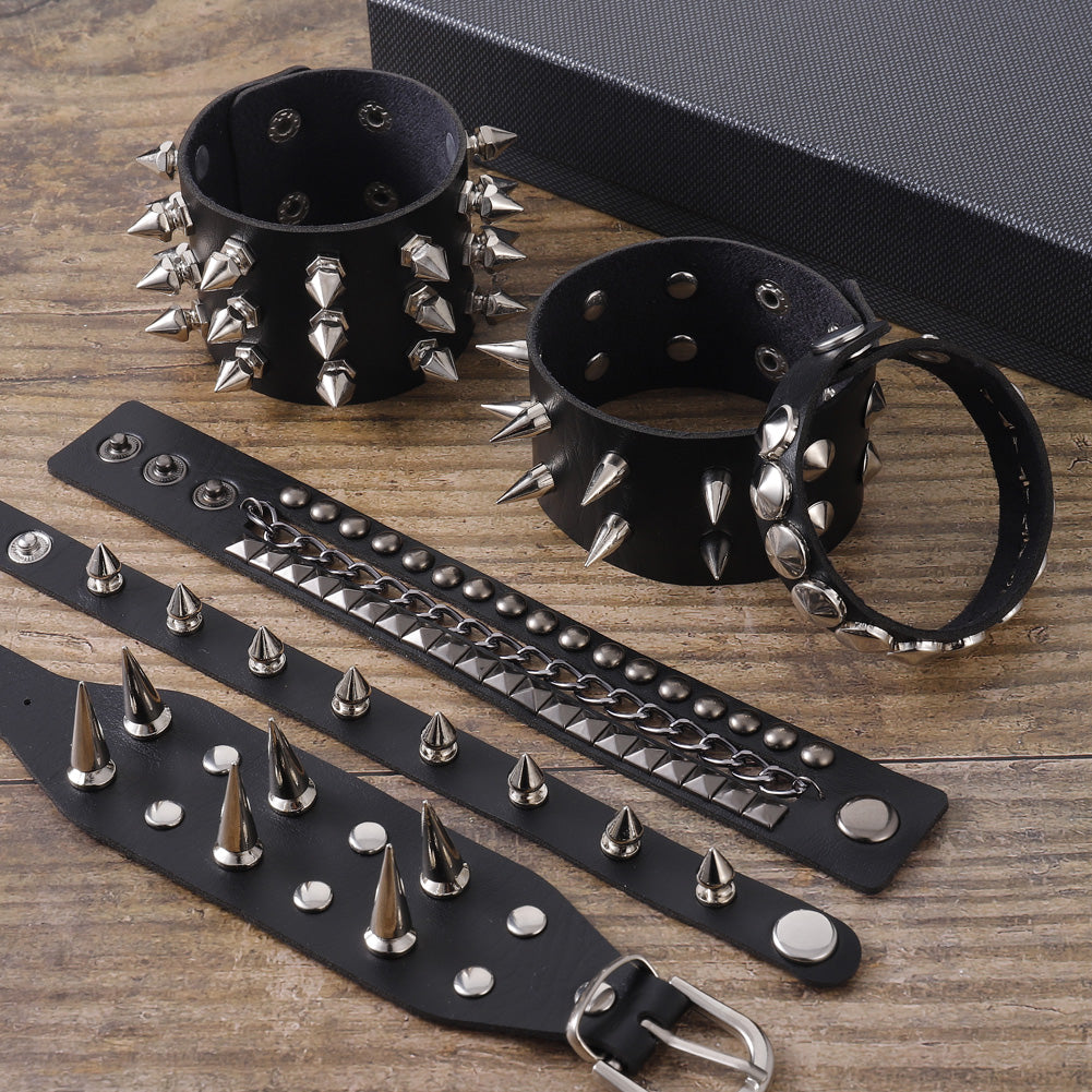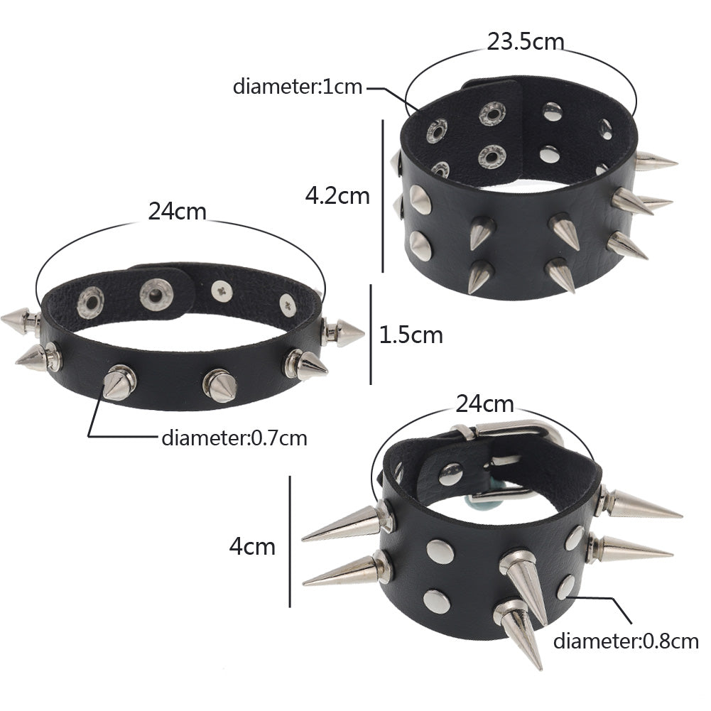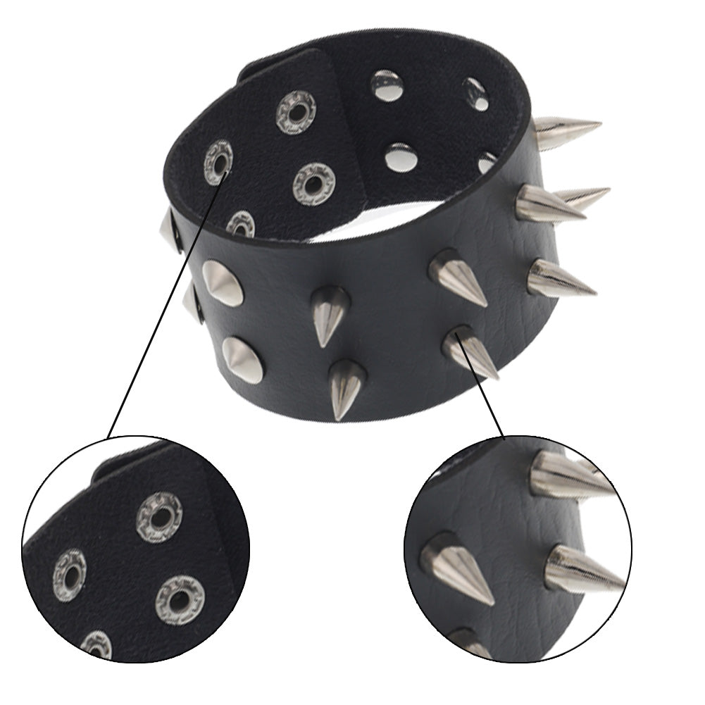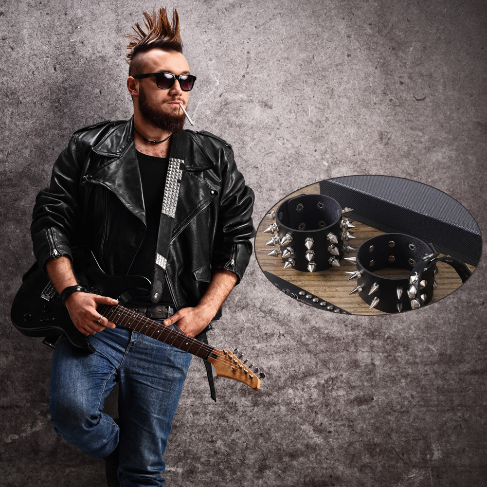 Package Includes Package comes with a set of 6 pieces black leather bracelet, each bracelet is different from another, enough quantity and style to satisfy your various needs. Fashion Punk Style The style of thick leather bracelet is unisex punk rock biker style with wide strap. You will get the compliments. These punk style bracelets design with rivets, the rivets are in different sizes, which look so cool. Stylish and cool design makes you stand out from the crowd. Comfortable to Wear These bracelets are made of artificial leather and alloy, that are safe and durable, not easy to get rust or corrode, hard-wearing material support you to wear for a long time. Suitable Occasions You can wear these punk style chokers to attend concert, birthday parties, proms, festivals, or as daily wear. Also can be accessories for LARP, teenagers/adults, cosplay, All Saints Eve, Halloween, fancy looks, a Cossack costume, nativity costumes, and historical reenactments. Nice Gift The studded bracelets are very popular among cool girls or boys, you can send this set of punk rivets bracelet to your friends as a Christmas gift, New Year gift, or birthday gift to make them happy. Details Materials: Leather Weight:148g/0.33lb Color: Black/Silver Product Include 6*Punk Studded Bracelet Precautions Due to manual measurement, please allow slight errors in size. Please take off the bracelet when you are showering or swimming, avoid touching water and clean it with soft cloth. *- Long time to use and neatly cut a better sense of wear. *- Not easy to fall off. *- The cortex is pure black, surface smooth and not rough. *- Alloy plating, color preserving for a long time. *- It's well worth it. Don't hesitate, just do it.
