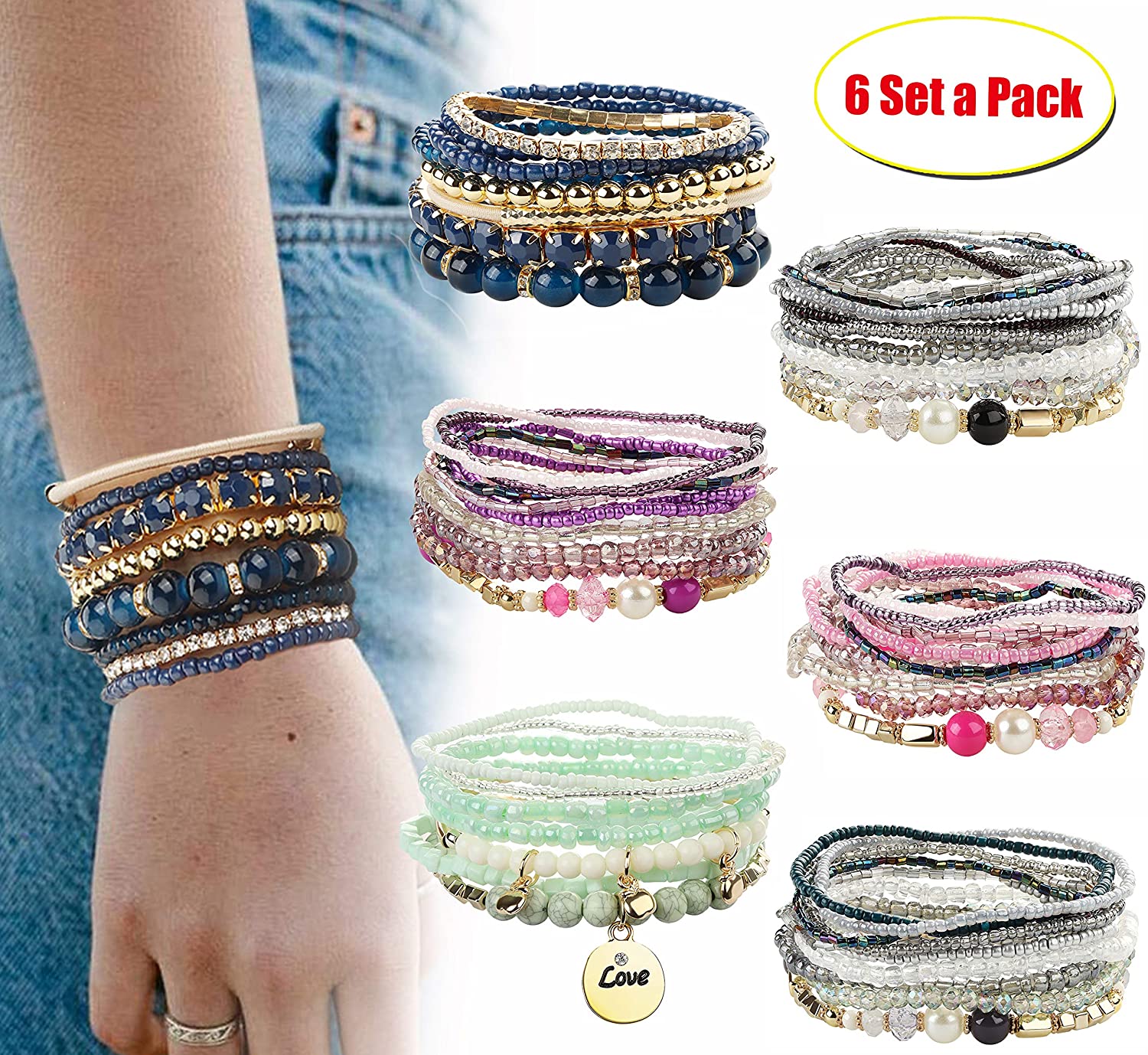 6 Sets Bohemian Stackable Bead Bracelets for Women
