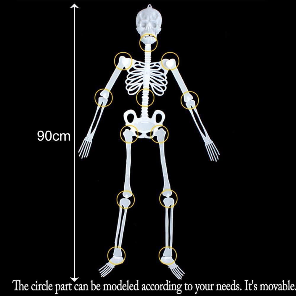 Specification: Material: plastic Size: 90cm Color: white Package includes: Skeleton*1 Note: 1. Manual measurement, the size will have an error of 0.5-2mm, please refer to the actual size. 2. Due to the difference in light and screen, the color of the product may be slightly different from the picture. *- The skeleton body is suitable for Halloween, fun party decoration, etc. Its legs and hands can move freely and need to be exposed to sunlight. It will glow in the dark (green). *- This luminous skeleton is suitable for fancy dancers, parties, birthday parties, Halloween, carnival and other festivals and role-playing. *- It's creepy in any Halloween scene or decoration, and it's perfect for a masquerade party. *- Create your scar style. It is very suitable for adding a terrible mask to Halloween and Carnival, which will attract attention. *- You can even add a touch of neon color to a carnival or disco.
