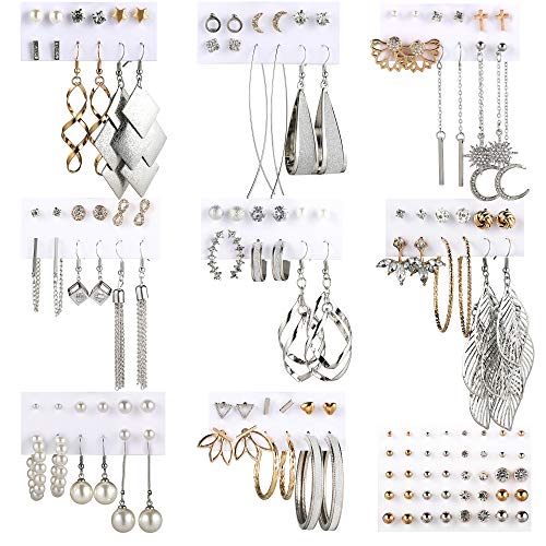 - Assorted Styles: The fashion earring set combines most of stylish dangle earrings, stud earrings, threader earrings and pearl earrings, with different shapes and styles, which will make you stand out every day.