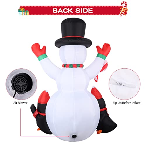 6FT Christmas Inflatables Snowman & Penguins w/ Colorful Rotating Lights