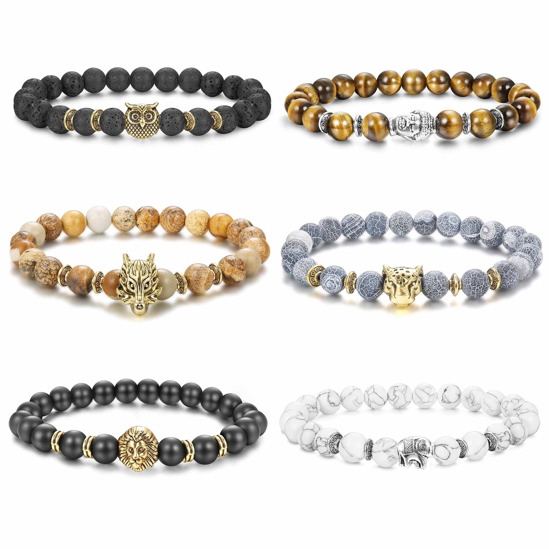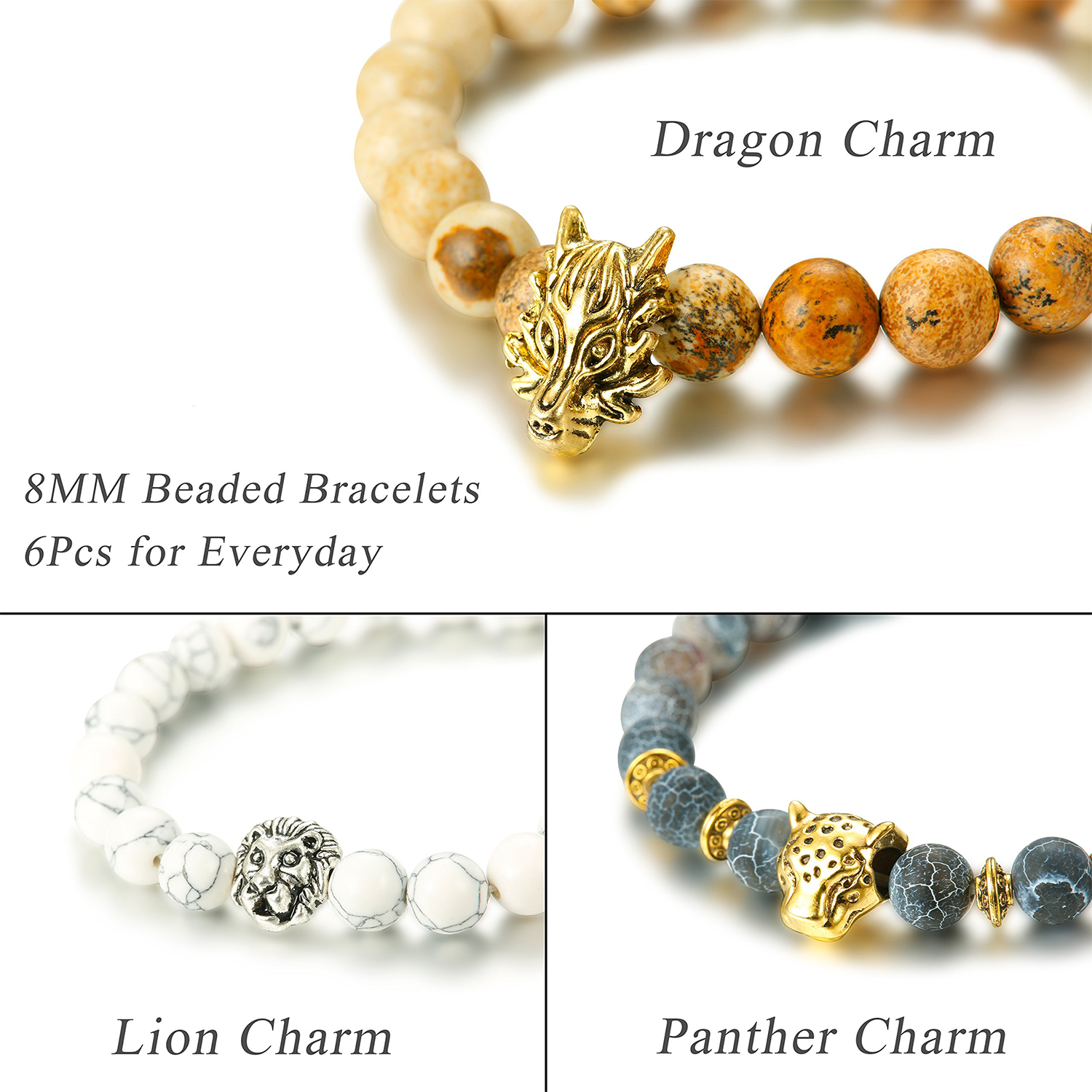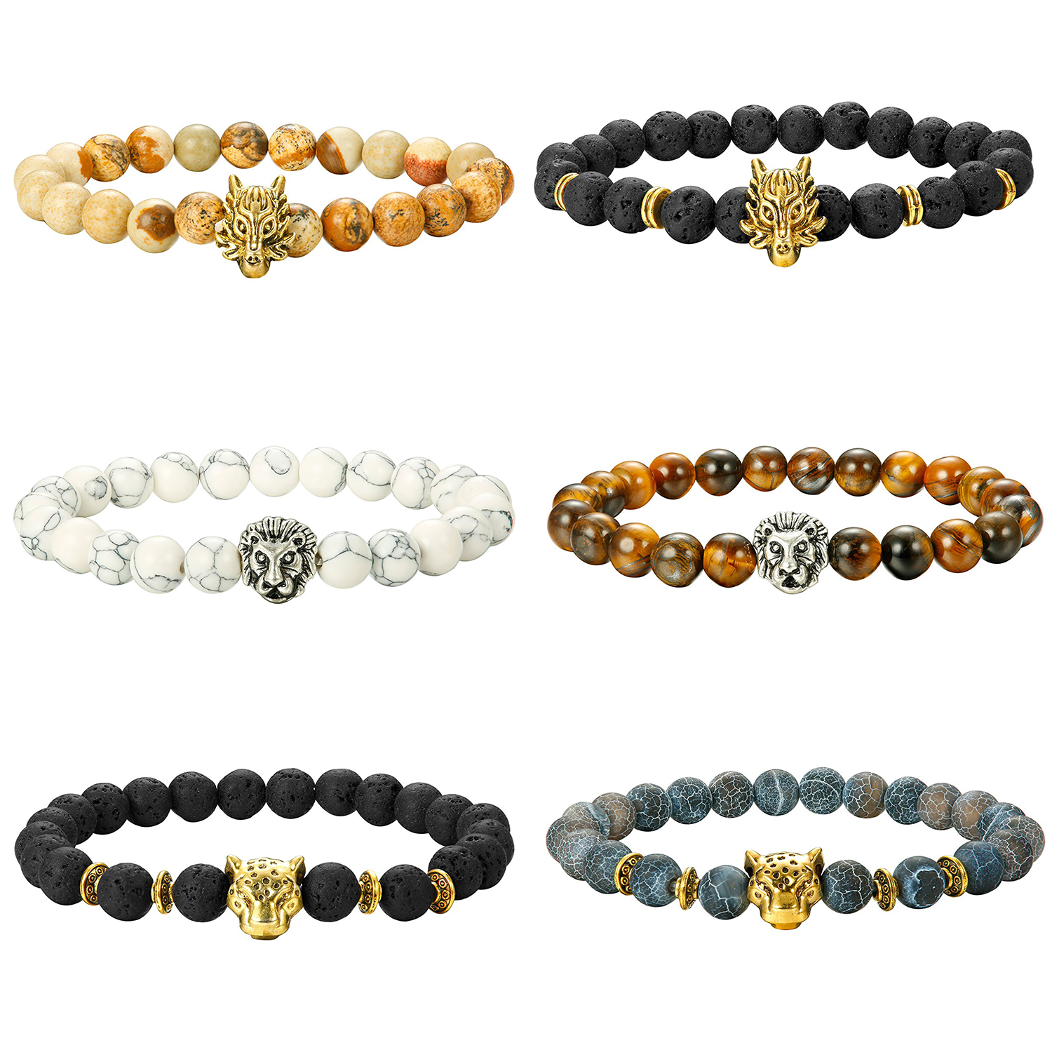 6PCS Mens 8mm Bead Bracelets Set Natural Stone