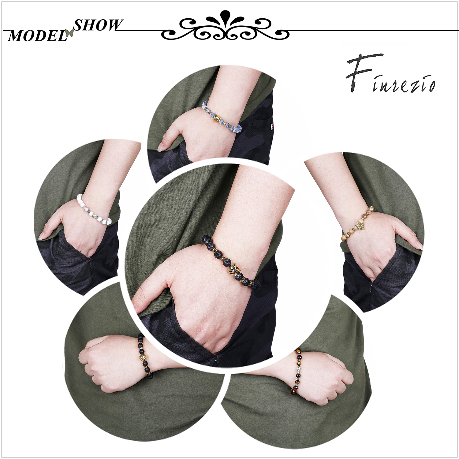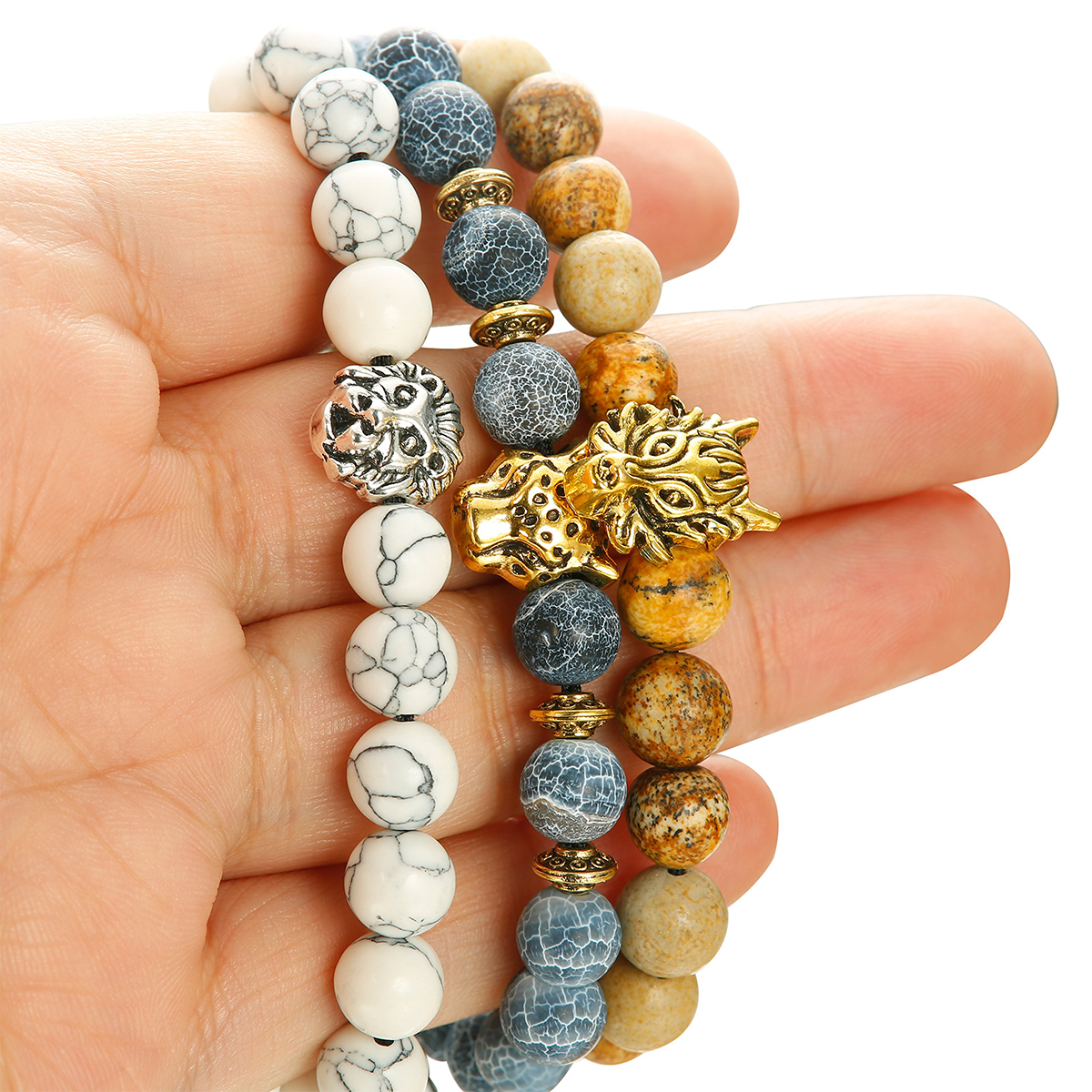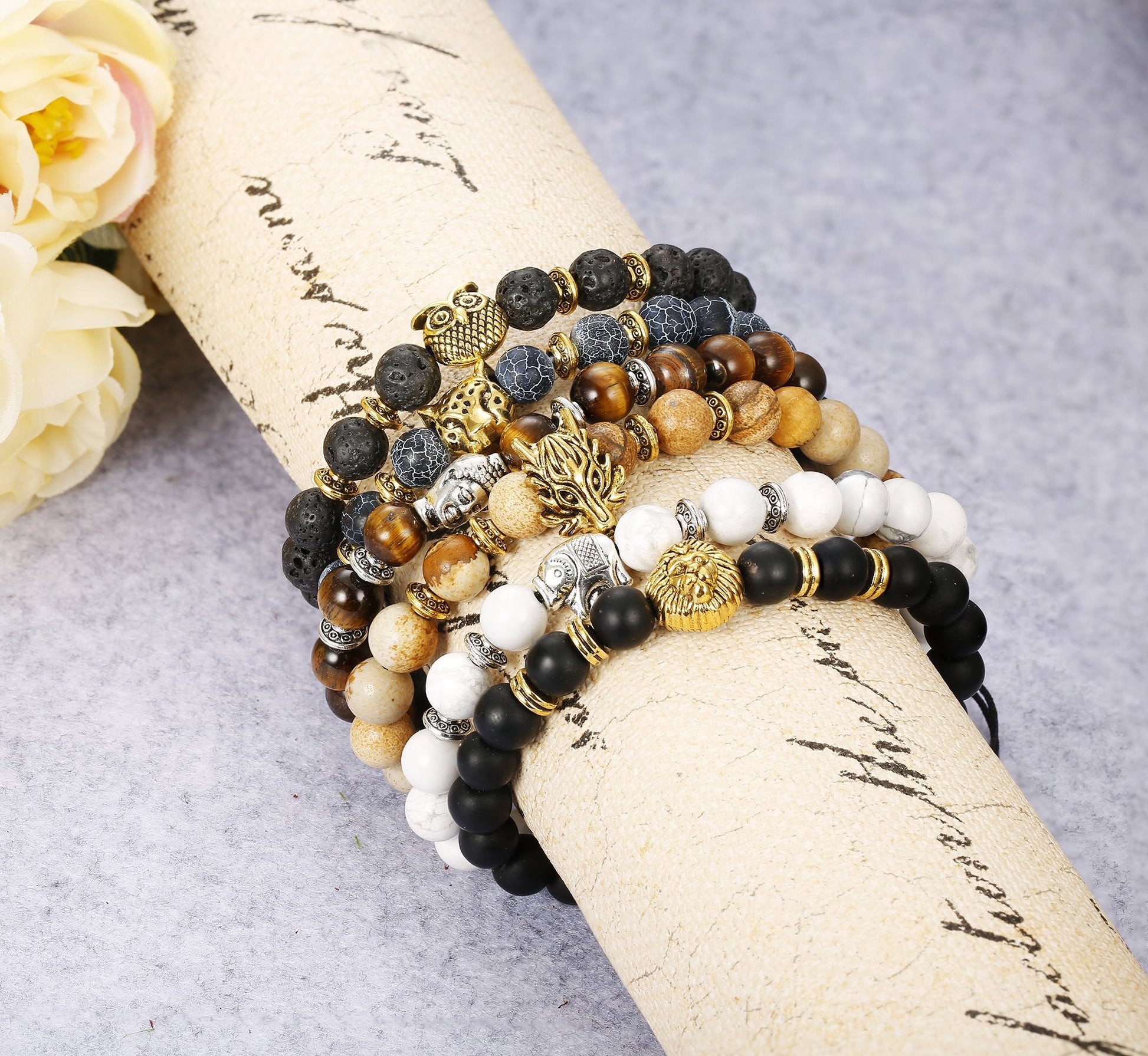 6PCS Mens 8mm Bead Bracelets Set Natural Stone
