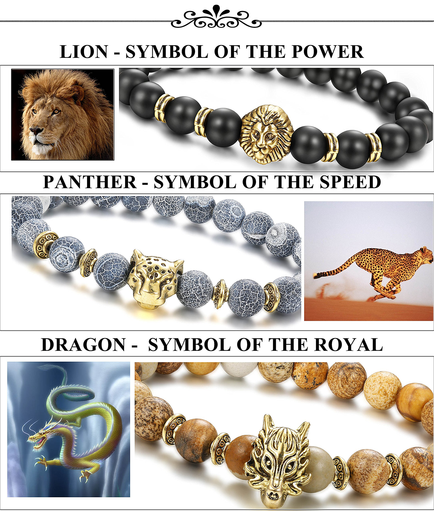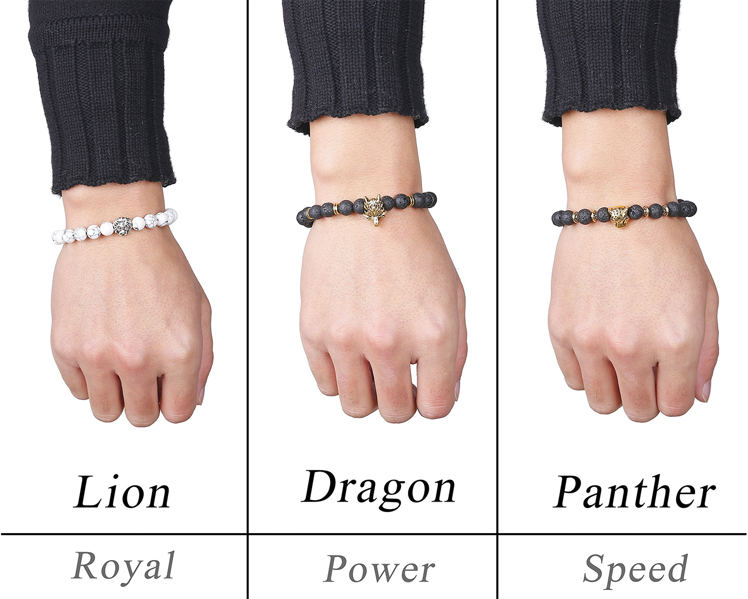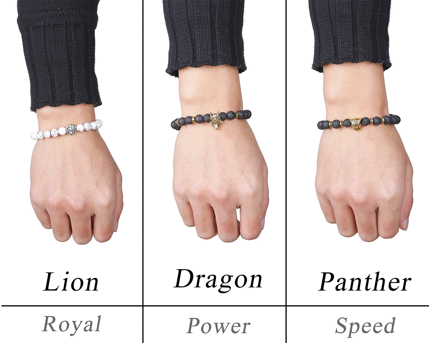 It is a good choice to brighten up your life. We adhere to the "customer first" principle to provide our customers with high quality product and good shopping experience. What we want to do is to sell high-quality fashion jewelry at an affordable prices to our customer Jstyle 6PCS Mens Bead Bracelets Set Great Workmanship: These jewelry set are handmade, sufficiently unique and stylish, Affordable set. These unique gorgeous fashionable and trendy choker necklace earrings set are good with any outfit. Whether it is work or leisure, holiday style, they can decorate your clothes very well. About service: For a happy shopping experience,we have done and will continue to do as follows 1.Products we sell are all in new condition and have passed rigid inspection. 2.If you have any questions,please feel free to contact us ,and we will get back to you within 24 hours 3.You will never worry about the issue of refund or return,because we promise 90-day warranty. *- 【 JUST FOR YOU 】 One set includes 6PCS bead bracelet. Each 2PCS of Dragon/Lion/Panther Charm bracelet. They mean Power/Royal/Speed that the simple of A TRUE MAN. Made of Lava Rock and Natural Stone, Lava Rocks are porous making them perfect for absorbing and diffusing Essential Oils. It will energize your day and push you to the best of your ability. *- 【 SIZE 】 8MM beaded bracelet for men and women, durable elastic rope, longer service life. 7.5”~9” elastic, easy to fit to your wrist. *- 【 MATERIAL 】 Made of 8mm Tiger's Eye & Lava rock Stone & natural Stone, comfortable to wear. The charm use the brass alloys, well-made product give you a better wearing experience. *- 【 WIDE APPLICATIONS 】 This bracelet set is good for both women and men. Comes with beautiful gift bag. Best choice for birthday, anniversary, holidays, stocking stuffers, graduation, Christmas, Valentine's Day, and any other occasion. Use the Lava Stones to absorb your favorite essential oils. The pores will trap the oil and slowly diffuse it throughout the day for added benefits. *-