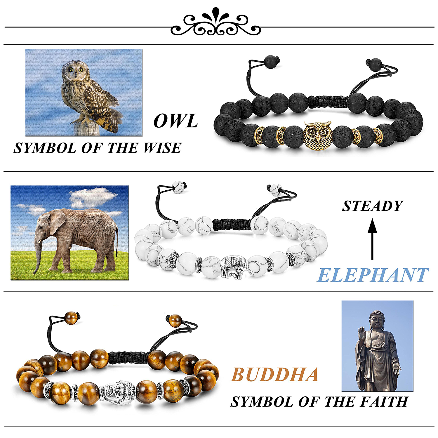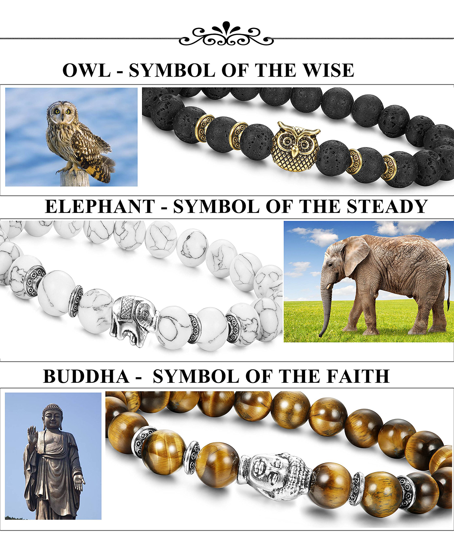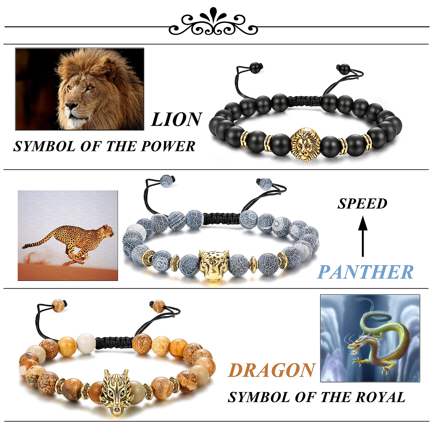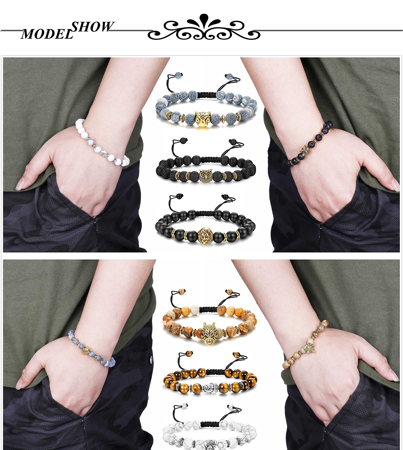 It is a good choice to brighten up your life. We adhere to the "customer first" principle to provide our customers with high quality product and good shopping experience. What we want to do is to sell high-quality fashion jewelry at an affordable prices to our customer Jstyle 6PCS Mens Bead Bracelets Set Great Workmanship: These jewelry set are handmade, sufficiently unique and stylish, Affordable set. These unique gorgeous fashionable and trendy choker necklace earrings set are good with any outfit. Whether it is work or leisure, holiday style, they can decorate your clothes very well. About service: For a happy shopping experience,we have done and will continue to do as follows 1.Products we sell are all in new condition and have passed rigid inspection. 2.If you have any questions,please feel free to contact us ,and we will get back to you within 24 hours 3.You will never worry about the issue of refund or return,because we promise 90-day warranty. *- 【 JUST FOR YOU 】 One set includes 6PCS bead bracelet. Each 2PCS of Dragon/Lion/Panther Charm bracelet. They mean Power/Royal/Speed that the simple of A TRUE MAN. Made of Lava Rock and Natural Stone, Lava Rocks are porous making them perfect for absorbing and diffusing Essential Oils. It will energize your day and push you to the best of your ability. *- 【 SIZE 】 8MM beaded bracelet for men and women, durable elastic rope, longer service life. 7.5”~9” elastic, easy to fit to your wrist. *- 【 MATERIAL 】 Made of 8mm Tiger's Eye & Lava rock Stone & natural Stone, comfortable to wear. The charm use the brass alloys, well-made product give you a better wearing experience. *- 【 WIDE APPLICATIONS 】 This bracelet set is good for both women and men. Comes with beautiful gift bag. Best choice for birthday, anniversary, holidays, stocking stuffers, graduation, Christmas, Valentine's Day, and any other occasion. Use the Lava Stones to absorb your favorite essential oils. The pores will trap the oil and slowly diffuse it throughout the day for added benefits. *-