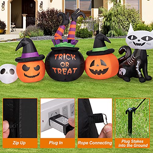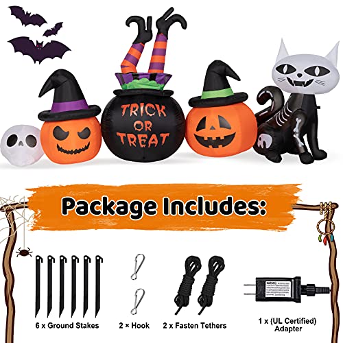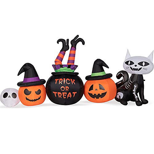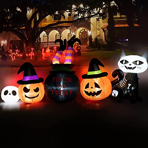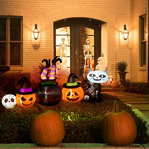 - 【Must-have Halloween Inflatables】 Witch legs in cauldron pot, skull, evil pumpkin with witch hat and skeleton black cat, all popular elements are included in these Halloween blow up yard decorations to help throw some magic and thrill all trick or treaters
